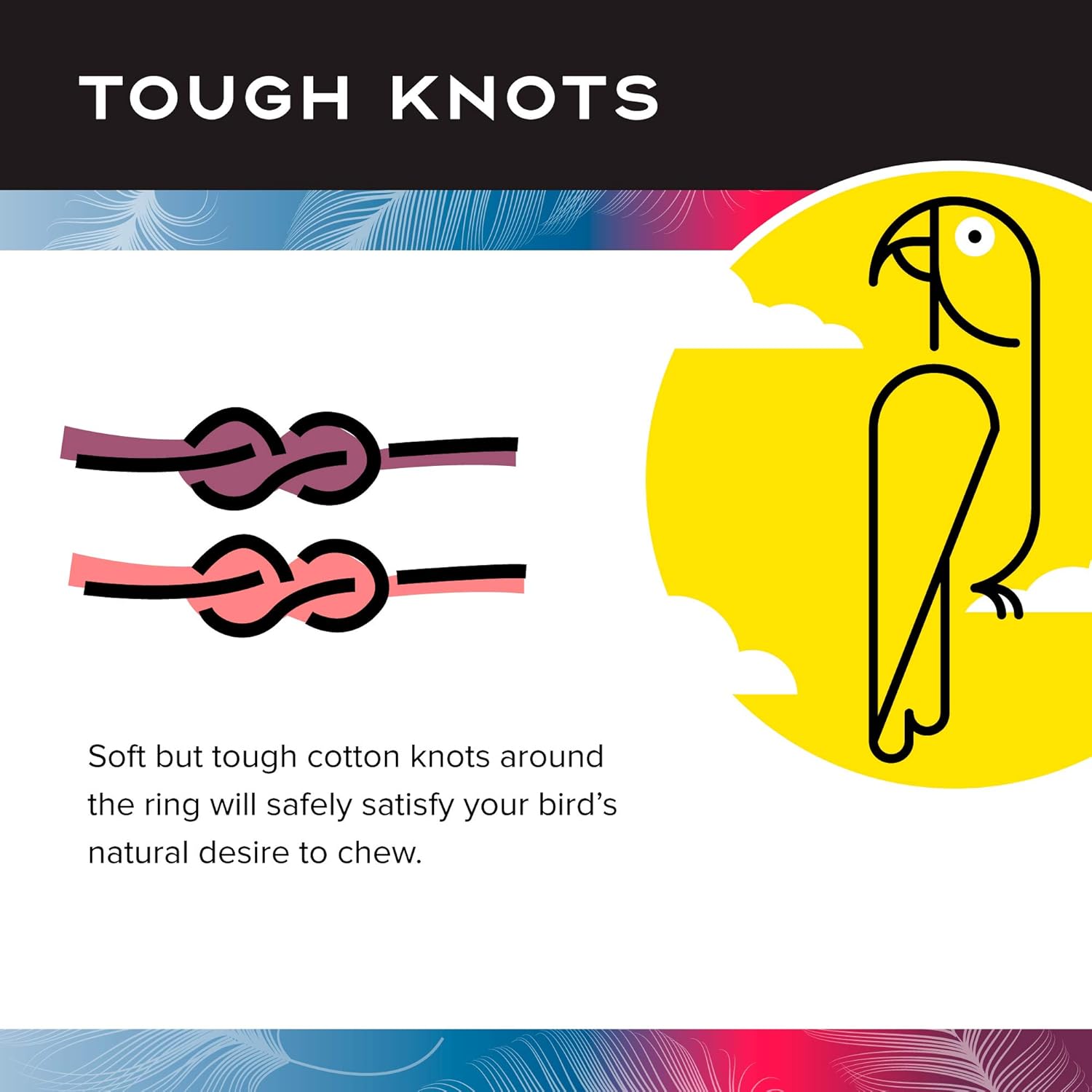 - TOUGH KNOTS: Soft but tough cotton knots around the ring will safely satisfy your birdโs natural desire to chew