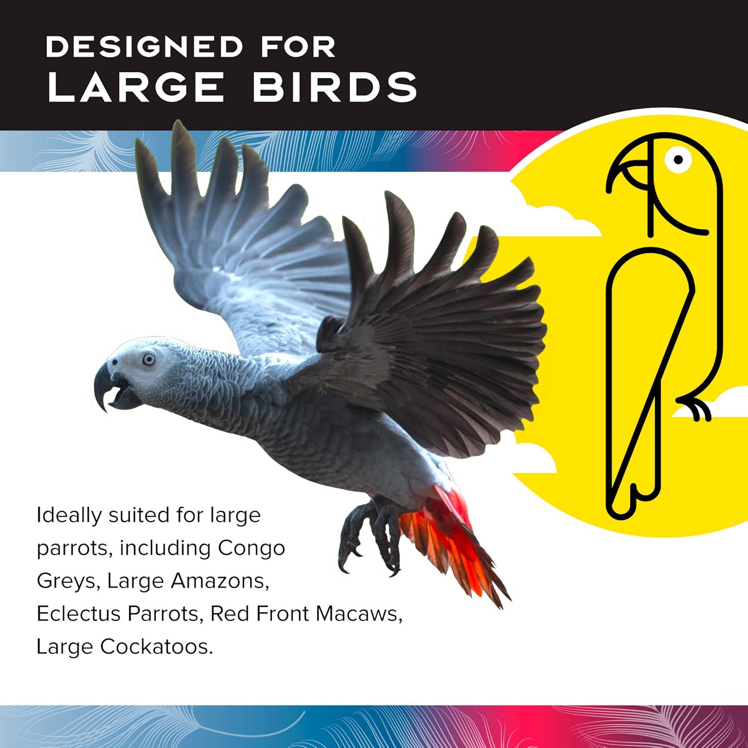 - MADE FOR LARGE BIRDS: Ideally suited for large to extra-large parrots, including Congo Greys, Amazons, Eclectus, Cockatoos, and Macaws, these bird toys are great for playing, chewing, swinging and more for large bird breeds