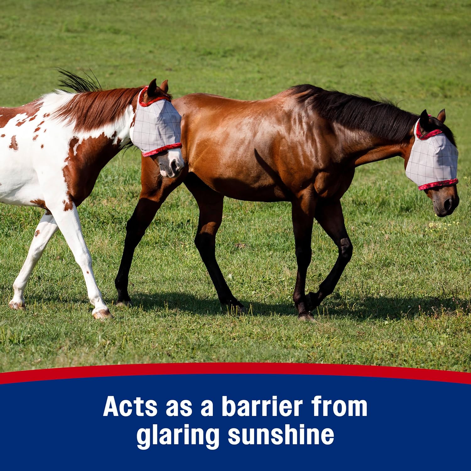 Farnam SuperMask II horse fly mask without ears, extended coverage, protects eyes from insects and debris, adjustable throat latch, Average Horse Size