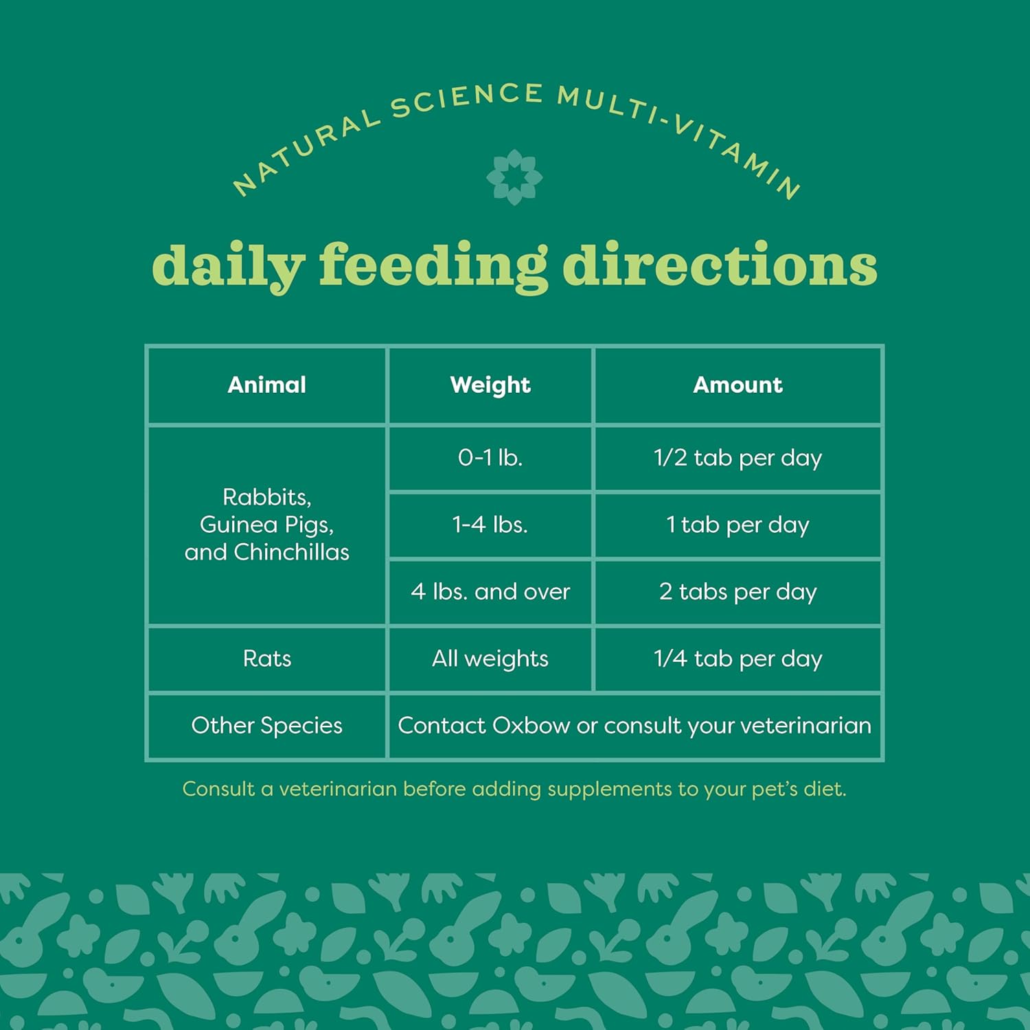 Oxbow Animal Health Natural Science Multi-Vitamin, High Fiber Supplement for Rabbit & Guinea Pig, Made with Timothy Hay, Multi-Pet Households, Omega 3 & 6 Fatty Acids, Made in USA, 4.2 oz Bag