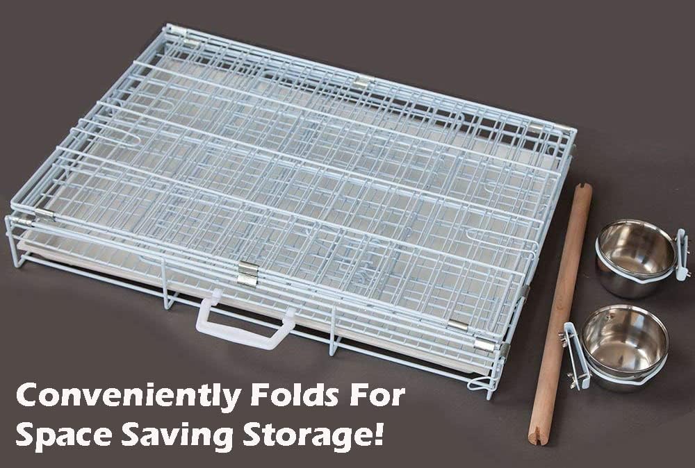 - Side access door allows bird to walk right into cage; Cage folds flat for easy storage