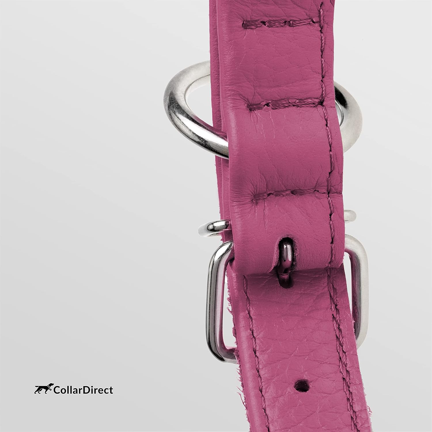 CollarDirect Rolled Leather Dog Collar, Soft Padded Round Puppy Collar, Handmade Genuine Leather Collar Dog Small Large Cat Collars 13 Colors (11-14 Inch, Pink Textured)
