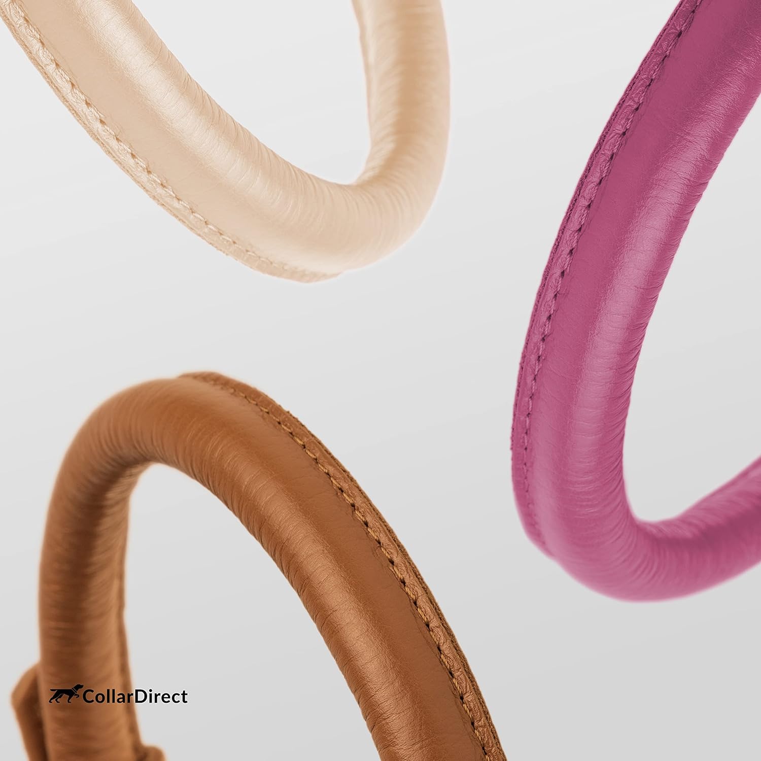CollarDirect Rolled Leather Dog Collar, Soft Padded Round Puppy Collar, Handmade Genuine Leather Collar Dog Small Large Cat Collars 13 Colors (15-19 Inch, Pink Textured)