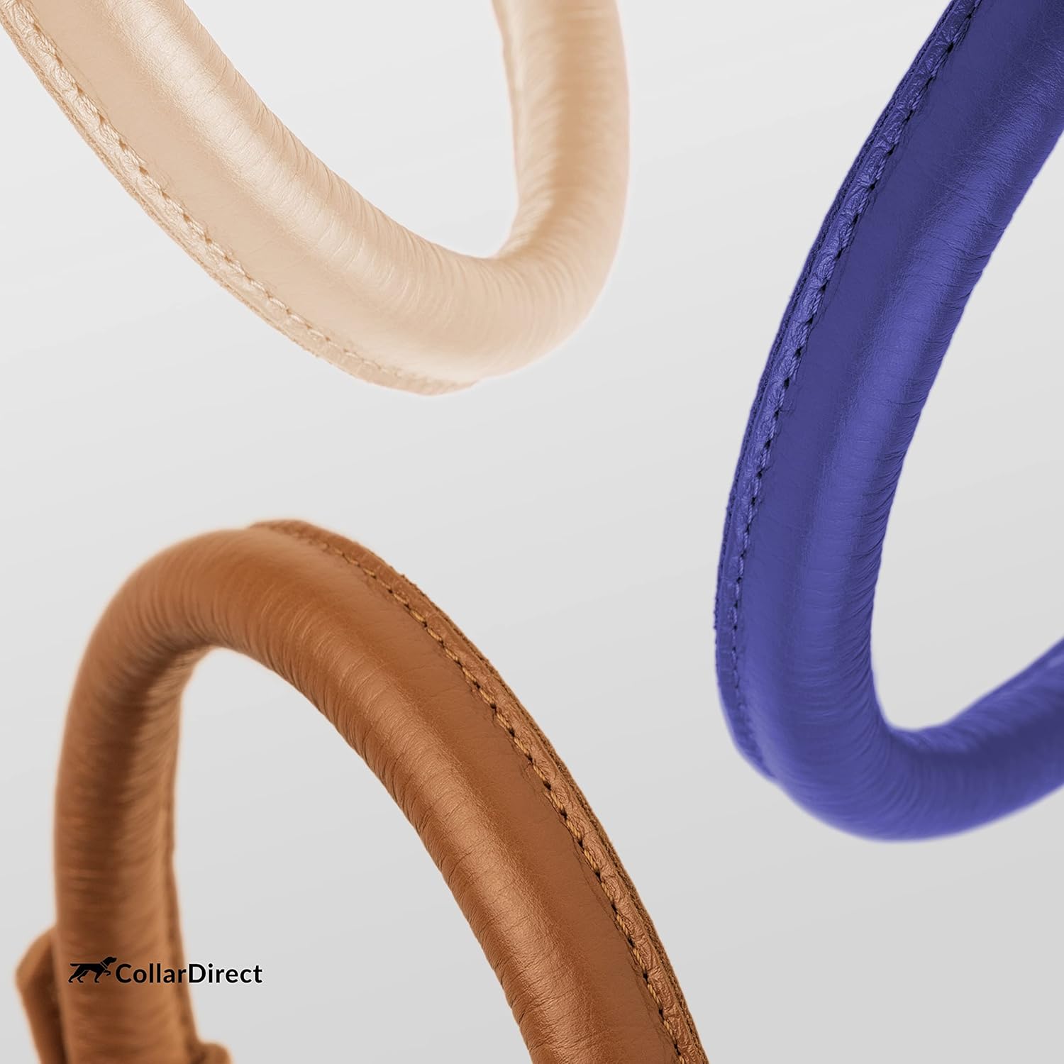 CollarDirect Rolled Leather Dog Collar, Soft Padded Round Puppy Collar, Handmade Genuine Leather Collar Dog Small Large Cat Collars 13 Colors (15-19 Inch, Purple Textured)