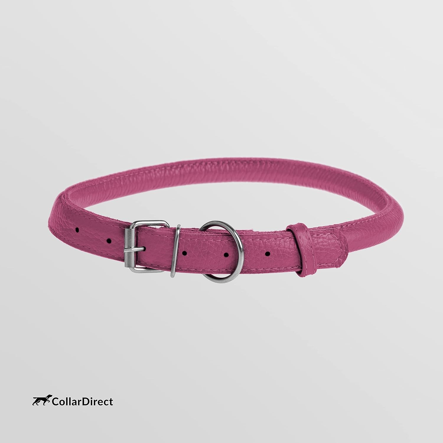 CollarDirect Rolled Leather Dog Collar, Soft Padded Round Puppy Collar, Handmade Genuine Leather Collar Dog Small Large Cat Collars 13 Colors (13-16 Inch, Pink Textured)