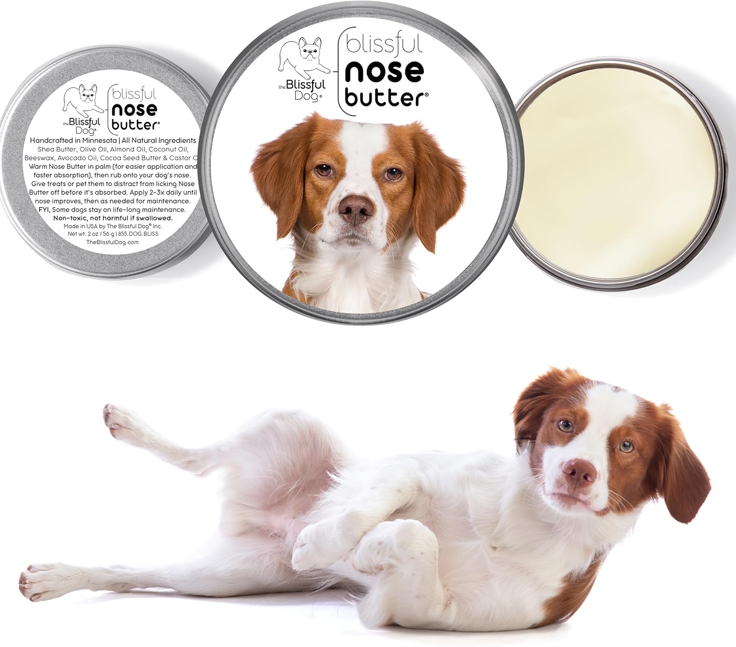 The Blissful Dog Brittany Spaniel Nose Butter for Dry, Cracked Skin, Lick-Safe Dog Nose Balm with Moisturizing Shea Butter, Almond, Olive, and Essential Oils, Pet Supplies, Uncented, 2 oz.