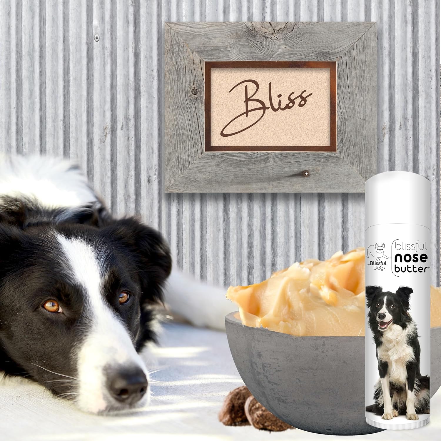 The Blissful Dog Border Collie Nose Butter for Dry, Cracked Skin, Lick-Safe Dog Nose Balm with Moisturizing Shea Butter, Almond, Olive, and Essential Oils, Pet Supplies, Uncented, 0.50 oz.