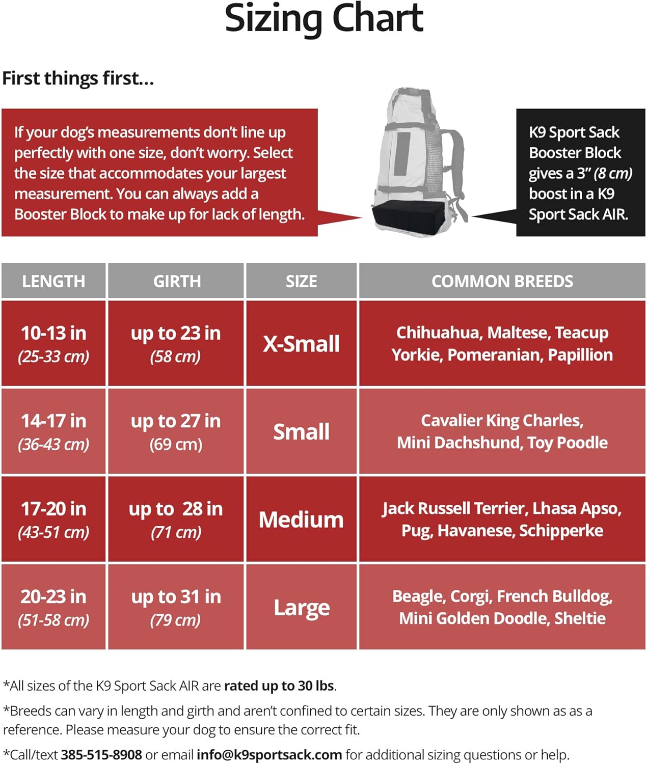 - FIND THE RIGHT SIZE - The Medium is best for dogs with a length of 17-19” from collar to the base of the tail and a girth up to 28”. Typical dog breeds that will fit this size backpack include Beagle, Corgi, French Bulldog, Shiba Inu & Terrier.