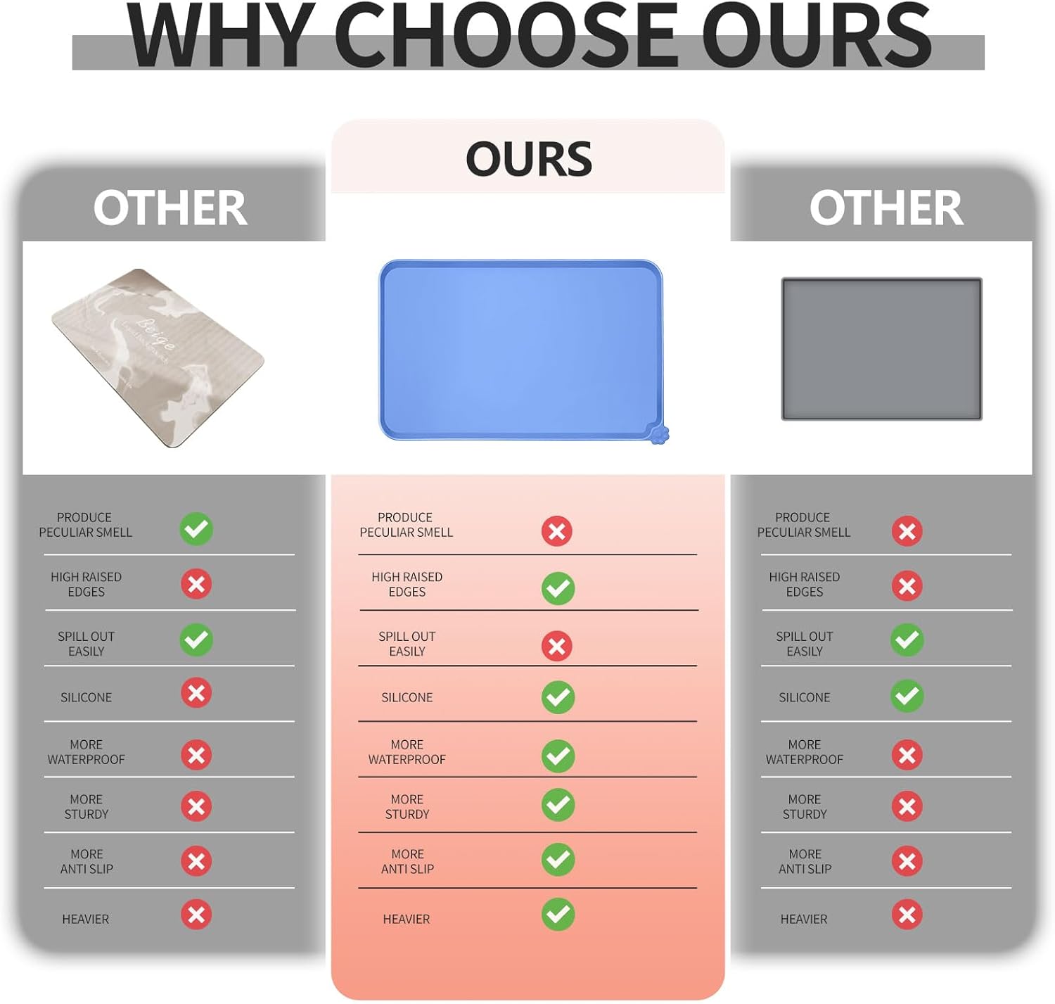 - Anti-slip design: our non-slip pet feeding mat ensures stability for your pet's bowl, preventing any water stains or spills on the floor. Enjoy peace of mind when feeding your pet, knowing that their food stays in place