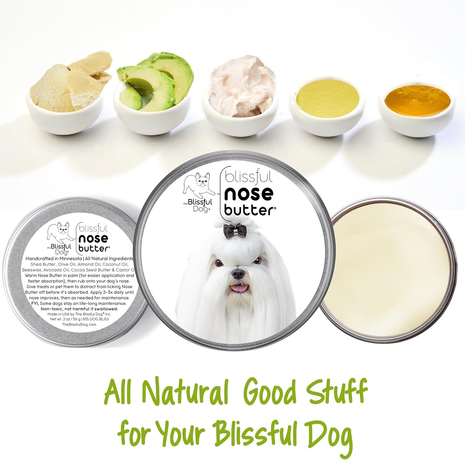The Blissful Dog Maltese Nose Butter for Dry, Cracked Skin, Lick-Safe Dog Nose Balm with Moisturizing Shea Butter, Almond, Olive, and Essential Oils, Pet Supplies, Uncented, 2 oz.