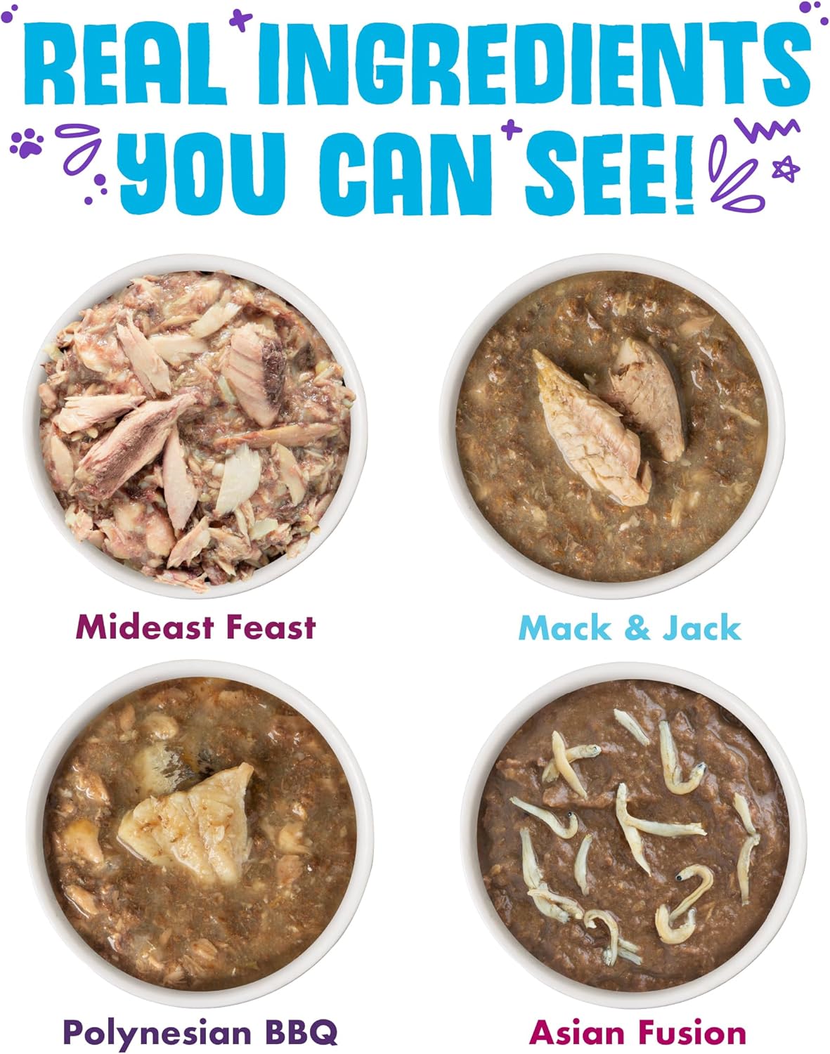- Variety Pack includes 6 cans of each: Mideast Feast, Mack & Jack, Asian Fusion & Polynesian BBQ.