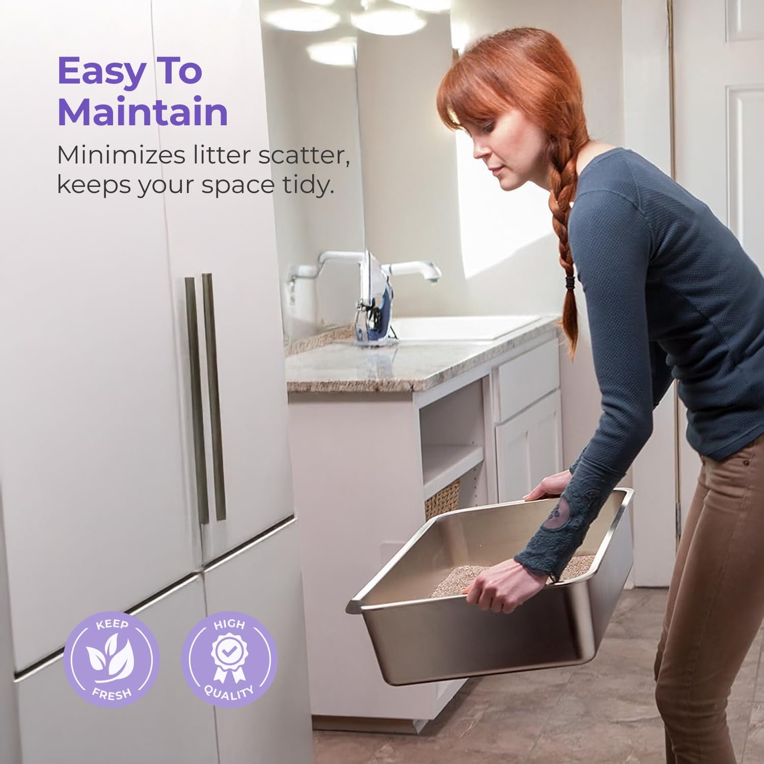 - Teflon-Coated Durability: Built from cat litter box stainless steel with Teflon coating, it resists rust, stains, and odors; ideal for long-lasting use without lingering smells or messy buildup