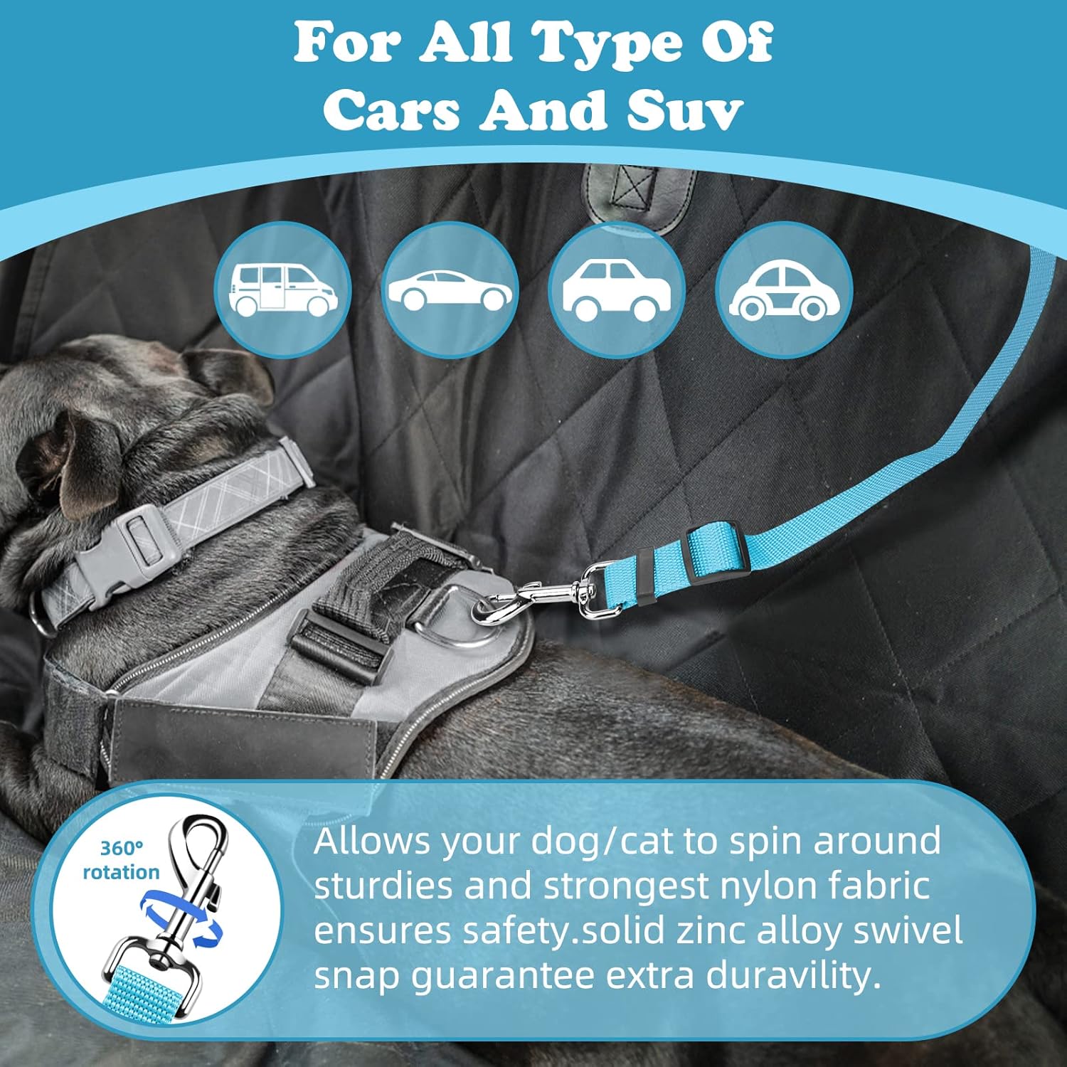 - HIGH QUALITY: Made of high quality nylon fabric to ensure safety, features the solid zinc alloy swivel snap and quality buckles, the pet car seat belt ensures the most safest traveling for your pet, and provides a most relaxing driving experience for you.