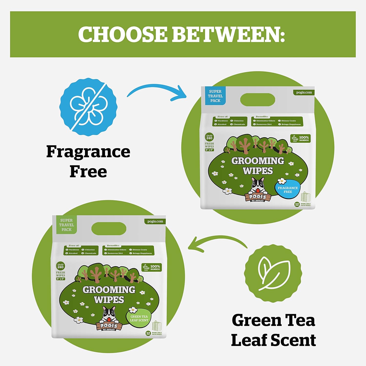 Pogi’s Dog Wipes Travel Packs – Hypoallergenic Pet Wipes for Paws, Body & Butt – Cleaning & Hydrating, Green Tea Scent, 240-Count