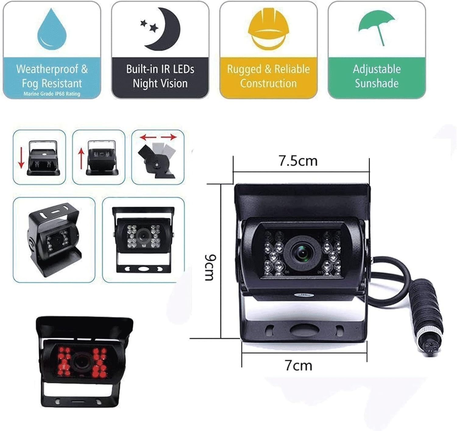 - ăReverse Camera Monitor With Wide ComatabilityăVoltage Range From 12-24V DC Power to Accomodate a Wide Variety of Large Vehicle as Truck, Bus, RV, Tractor, Car and ect