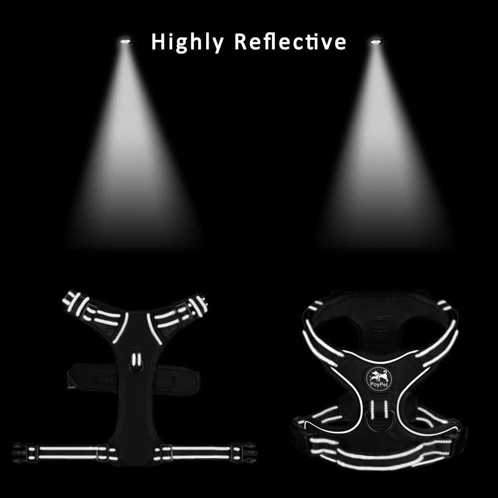 PoyPet No Pull Dog Harness, Reflective Comfortable Vest Harness with Front & Back 2 Leash Attachments and Easy Control Handle Adjustable Soft Padded Pet Vest for Small to Large Dogs (Pink,XL)