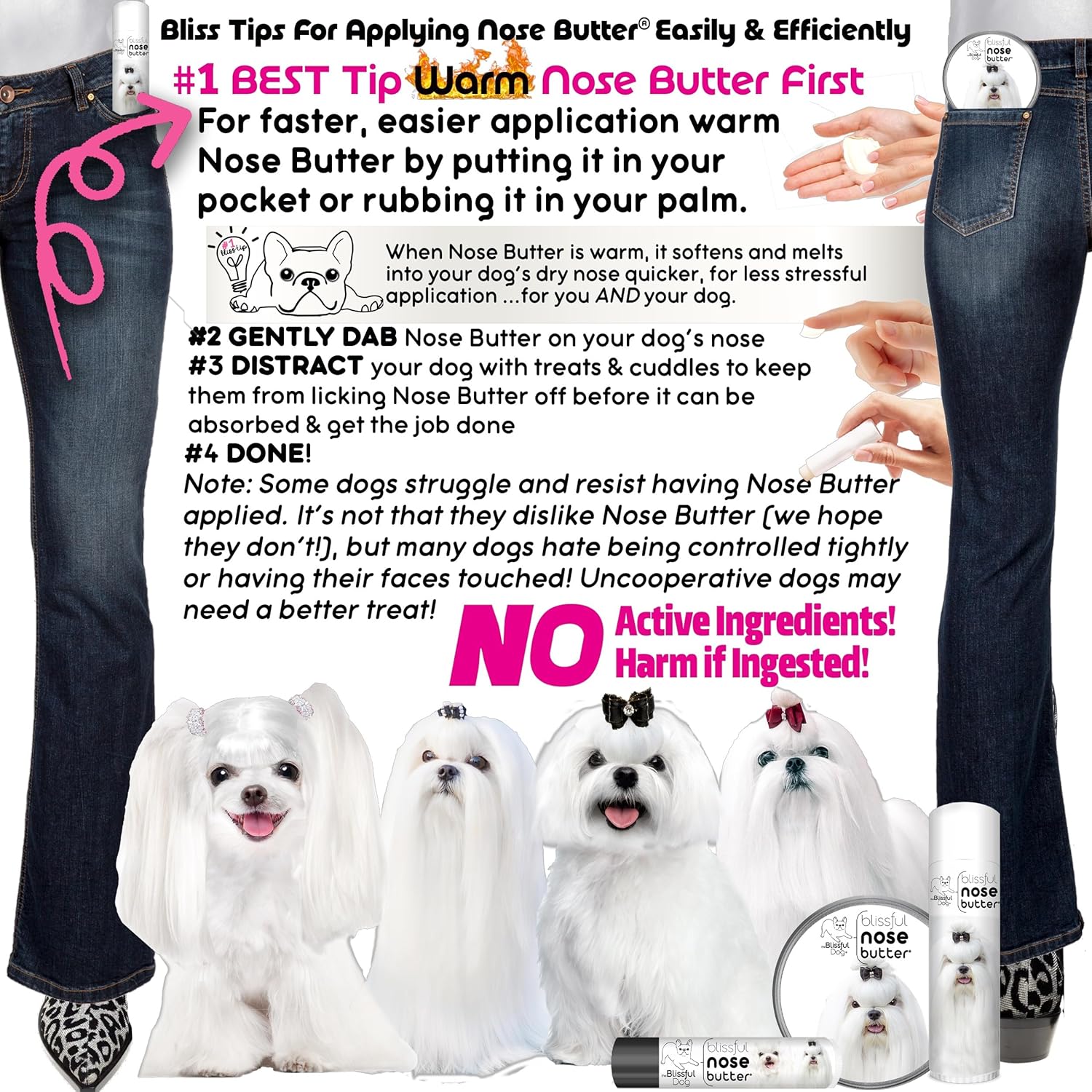 - Easy dog nose care - Easy to apply; Dab onto your dog's nose; that's it! Enriched with shea butter, this dog nose moisturizing butter brings relief to your dogโs dry nose. Non-toxic, no active ingredients, no harm if ingested