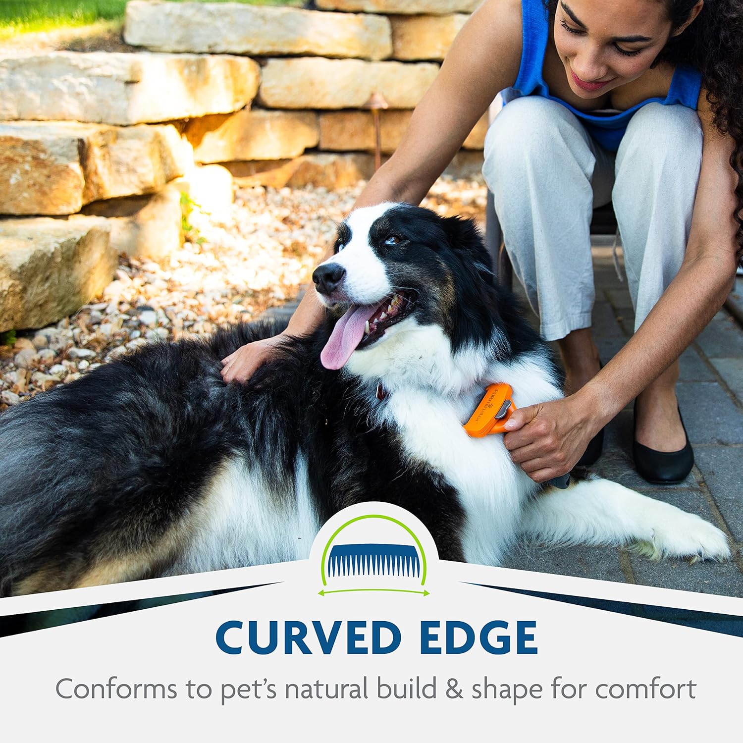 - REMOVES LOOSE HAIR: Stainless steel deShedding edge reaches through topcoat to safely and easily remove loose hair and undercoat without damaging topcoat or cutting skin.*