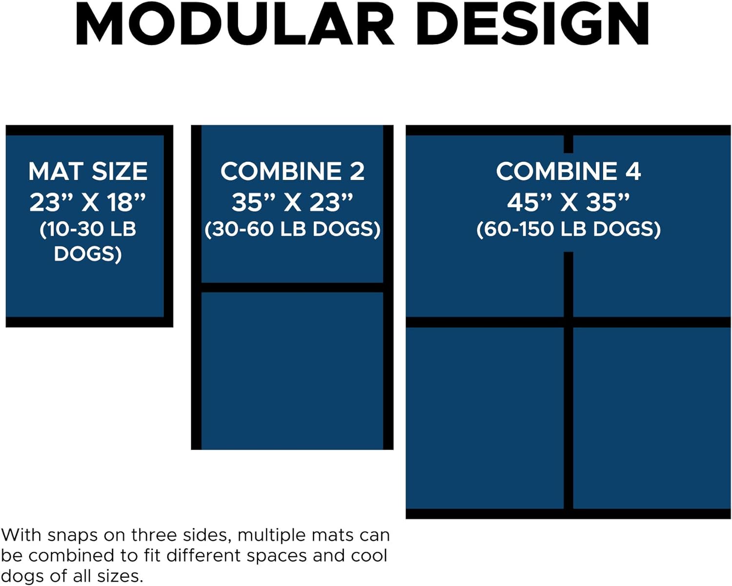- VETERINARIAN APPROVED: The Cooler Dog Hydro Cooling Mat is made with non-toxic, veterinarian-approved materials and contains no harmful chemicals or gels, only pure water. The rip-stop construction ensures durability for both indoor and outdoor use. Each mat has snaps on three sides to connect multiple mats for larger dogs. To maintain it, machine wash the mat cover as needed.