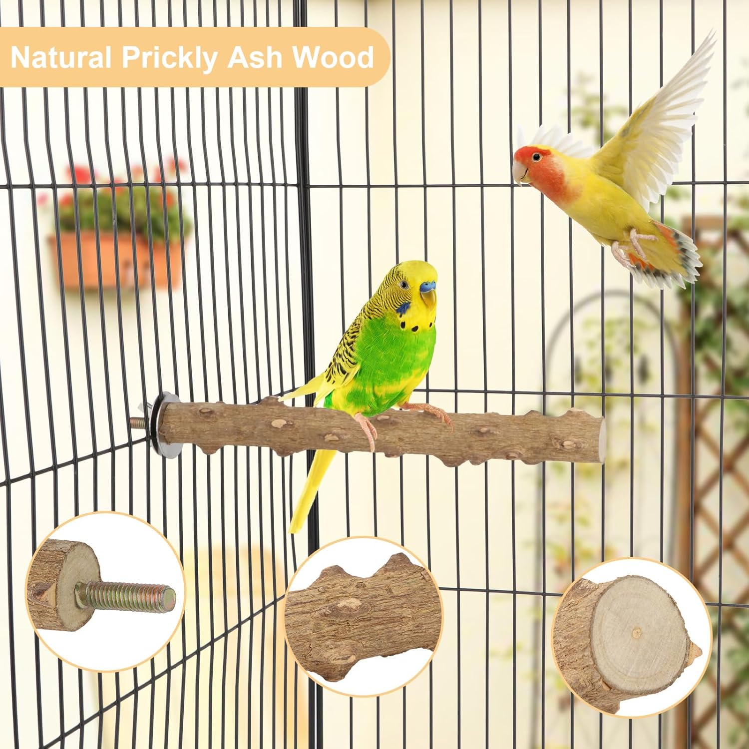 - 100% Natural Prickly Ash Wood β Safe Chewing & Zero Chemicals: Chemical-free bird perch made from dense hardwood, splinter-proof for parakeets, cockatiels, and parrots. No dyes or coatings β safer than plastic or rope perches.
