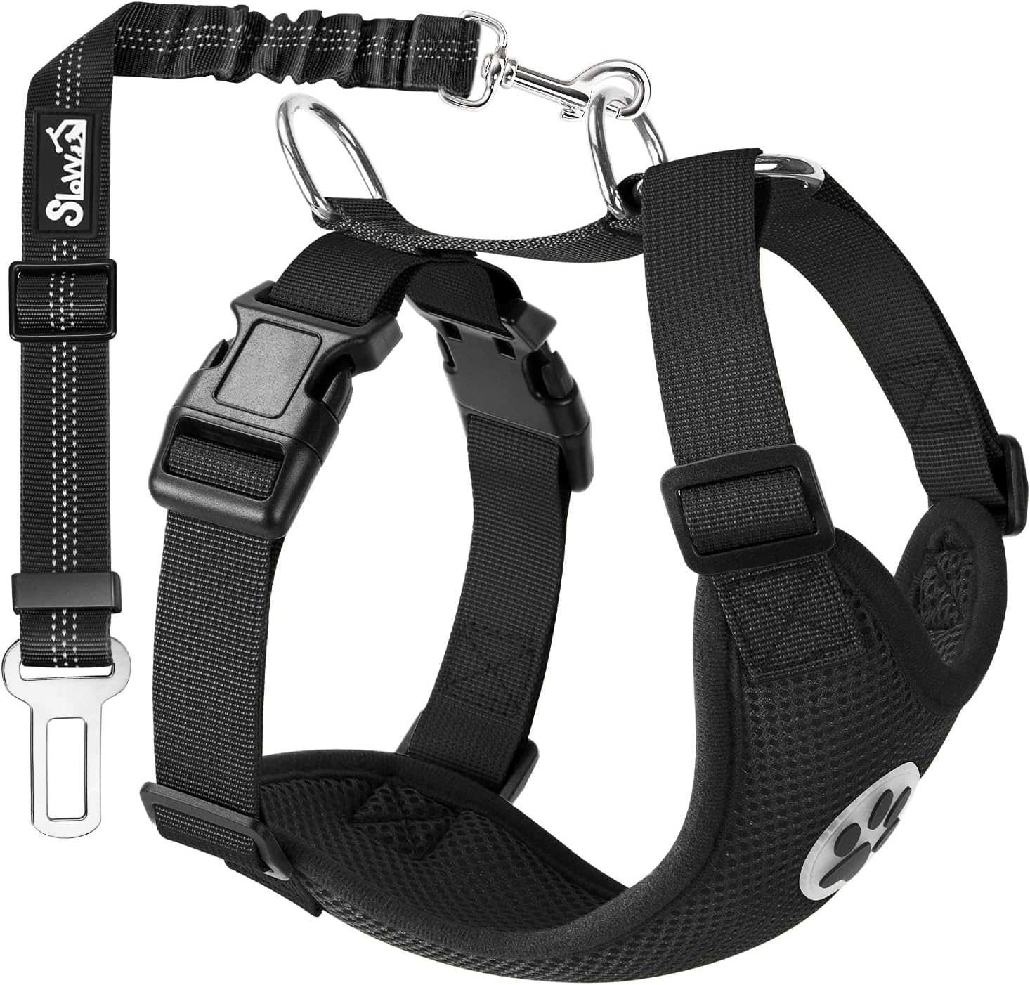 - 【Safe & Secure】--- (1). Breathable Mesh Chest Vest Harness: Our harness wraps around your pet's body and neck, providing a secure fit that prevents them from roaming the car or hopping into the front seat. It's a great alternative to a collar. (2). Elastic Safety Dog Seatbelt: it's made from durable nylon strap to protect the dog which is elastic and adjustable and it is long enough to let your pet move around in the back seat and lay down.