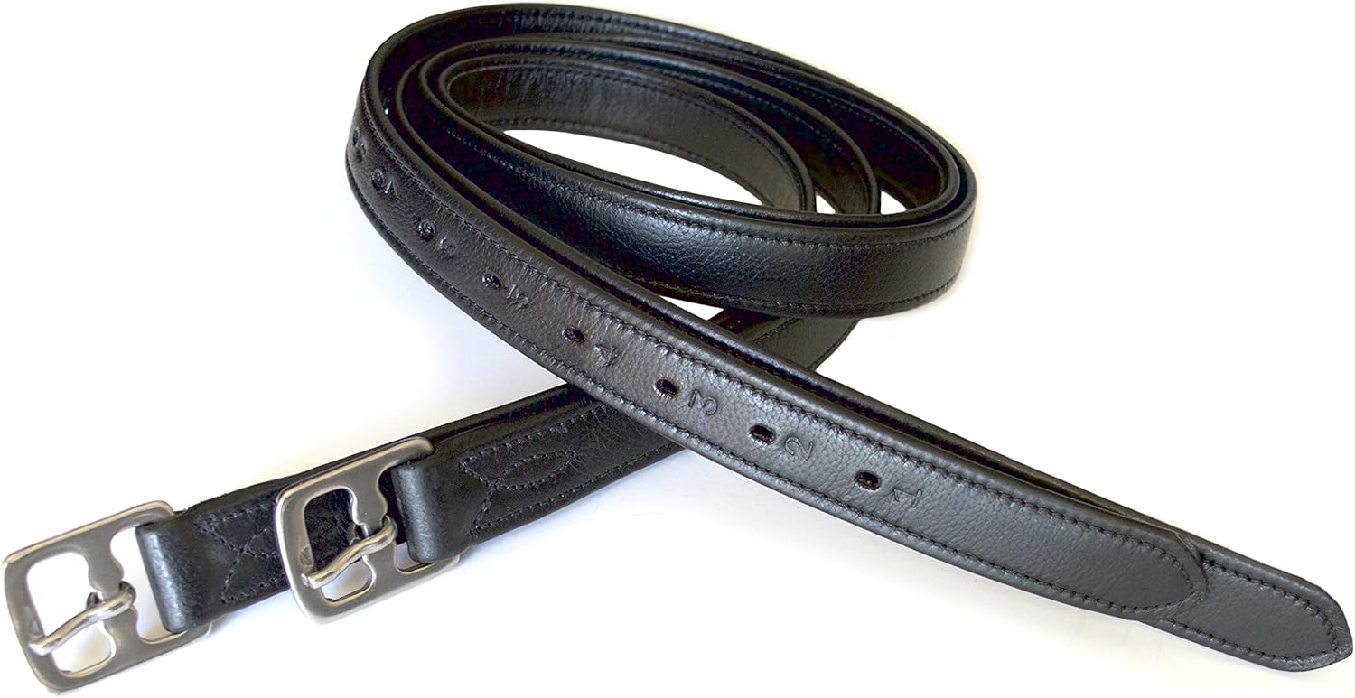54" / 60" New 1" Super Soft English Stirrup Leathers Black/Havana (Black, 60" x 1")