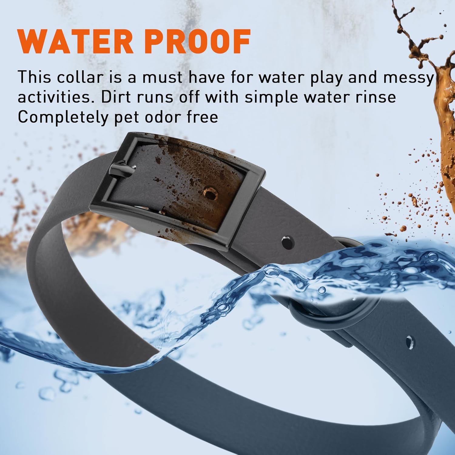 - Free Your Dog to romp in puddles and retrieve from lakes with the Dogline Biothane Waterproof Dog Collar. This water-repellent collar stays dry and odor-free, without shrinking or losing flexibility.