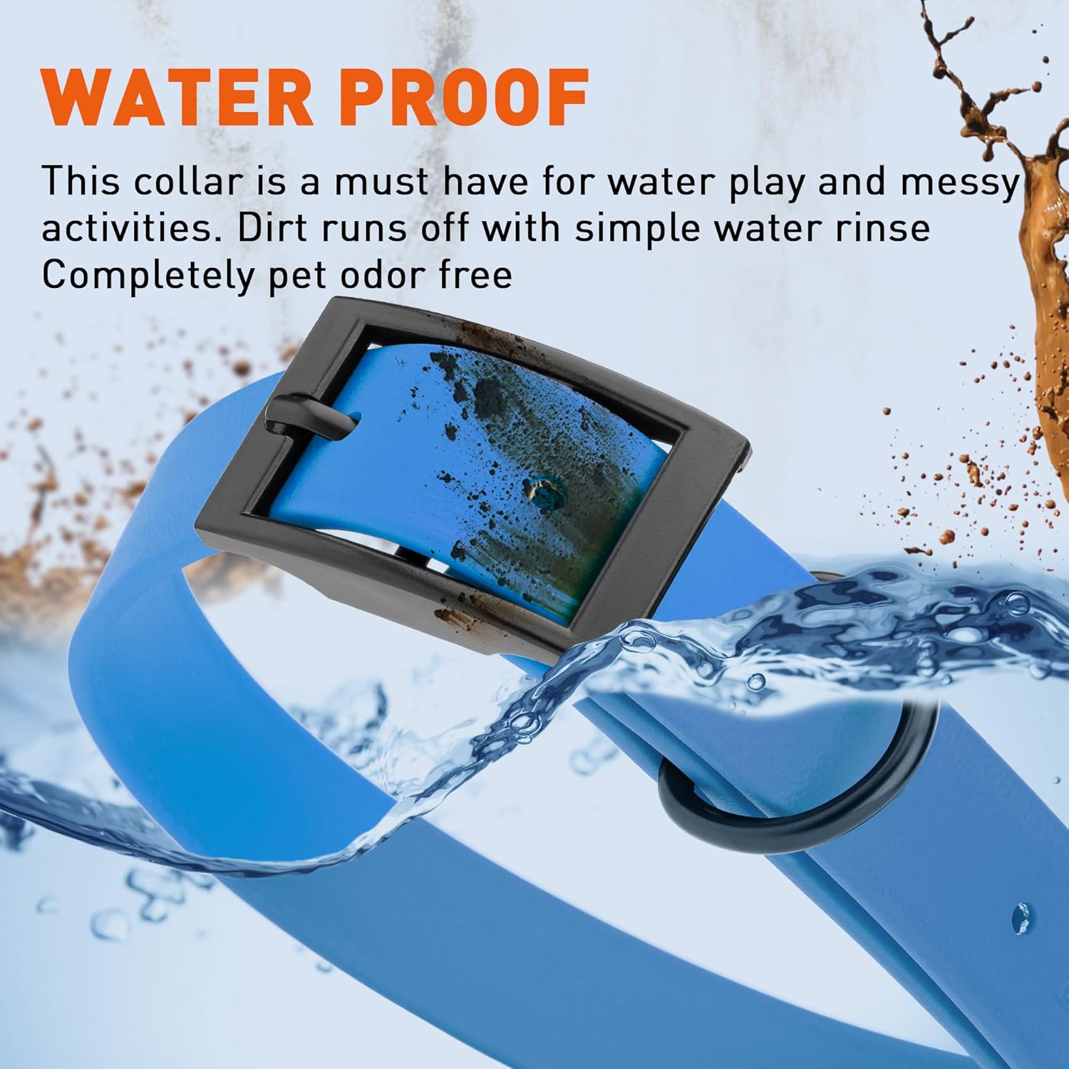 - Free Your Dog to romp in puddles and retrieve from lakes with the Dogline Biothane Waterproof Dog Collar. This water-repellent collar stays dry and odor-free, without shrinking or losing flexibility.