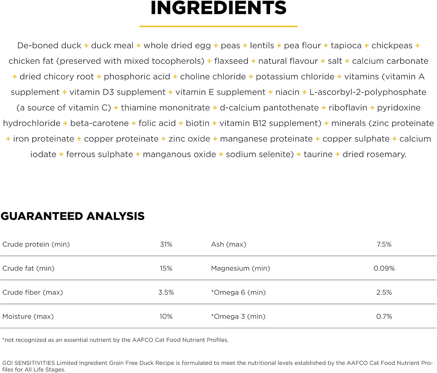 - COMPLETE + BALANCED NUTRITION FOR CATS OF ALL AGES: Complete nutrition using limited ingredients to minimize your cat's exposure to foods they may be allergic or sensitive to. Zero added grains, gluten, potato, wheat, corn or soy.