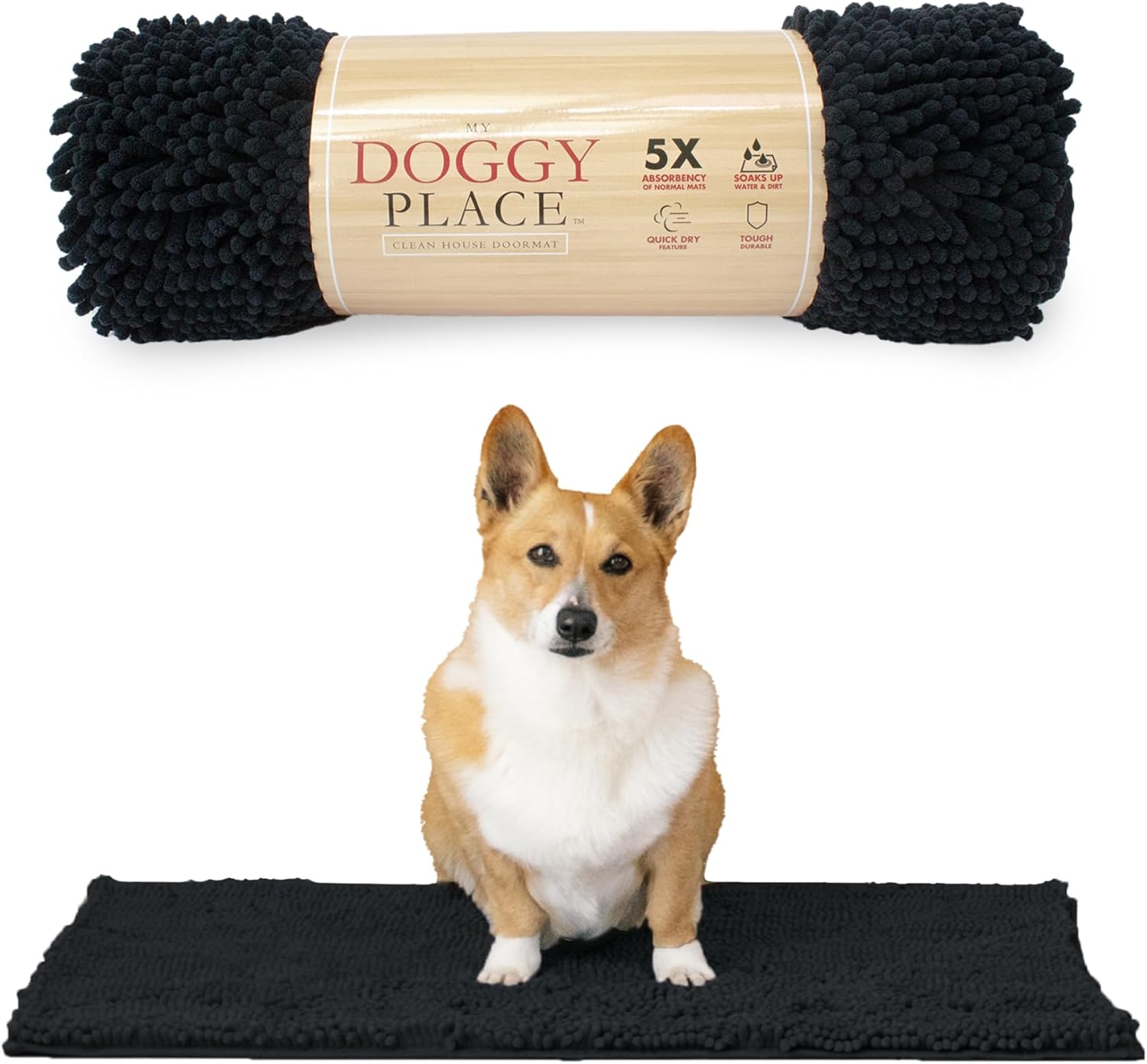 My Doggy Place Microfiber Dog Mat for Muddy Paws, 31" x 20" Black - Absorbent and Quick-Drying Dog Paw Cleaning Mat, Washer and Dryer Safe - Non-Slip Rubber Backed Dog Floor Mat, Medium