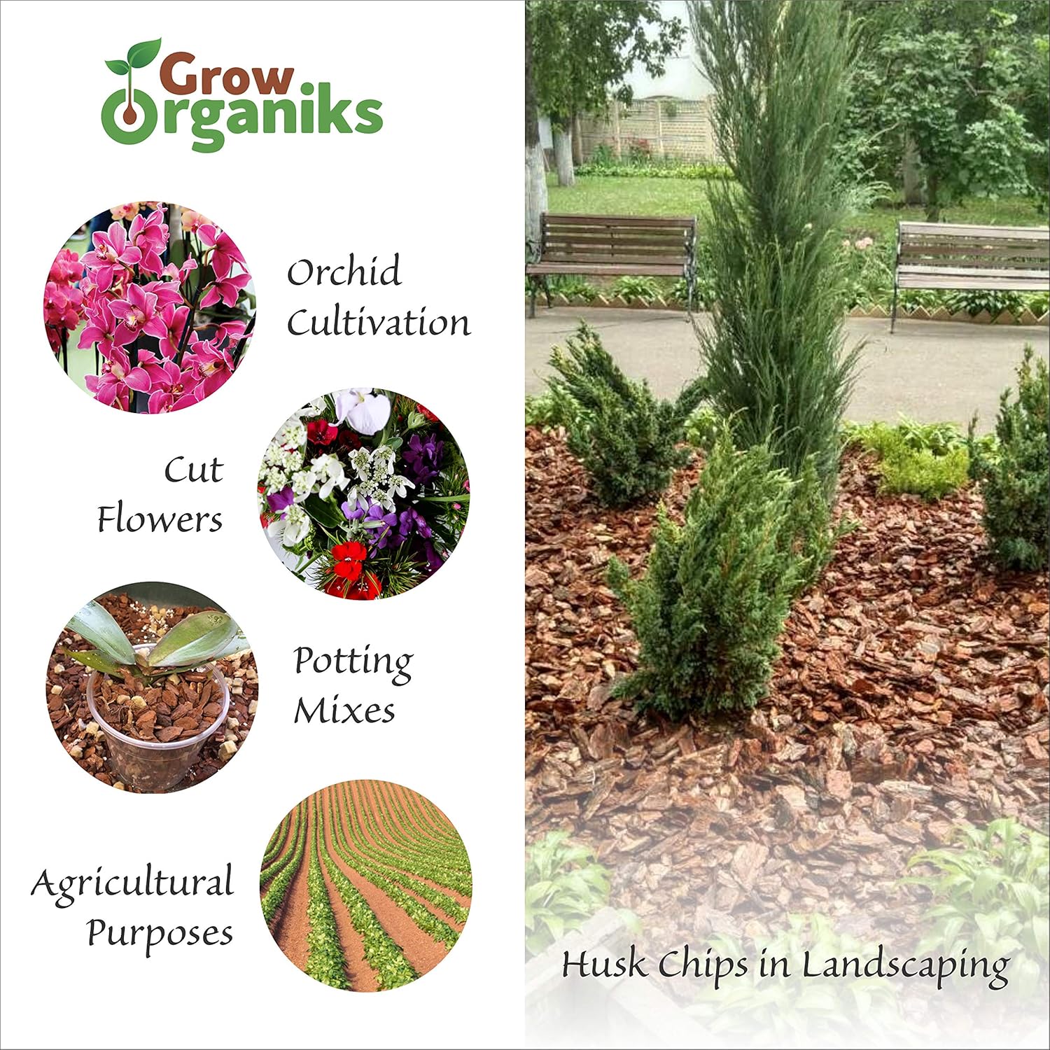 - [🐍100% Natural & Biodegradable] Grow Organiks Coconut Husk chips are cut pieces of the husk of the coconut compressed into 11 lbs.Coconut husks are a sustainable alternative to other mulches. Our Organic coco chips are best suitable for growing plants, and also perfect for reptile substrate.
