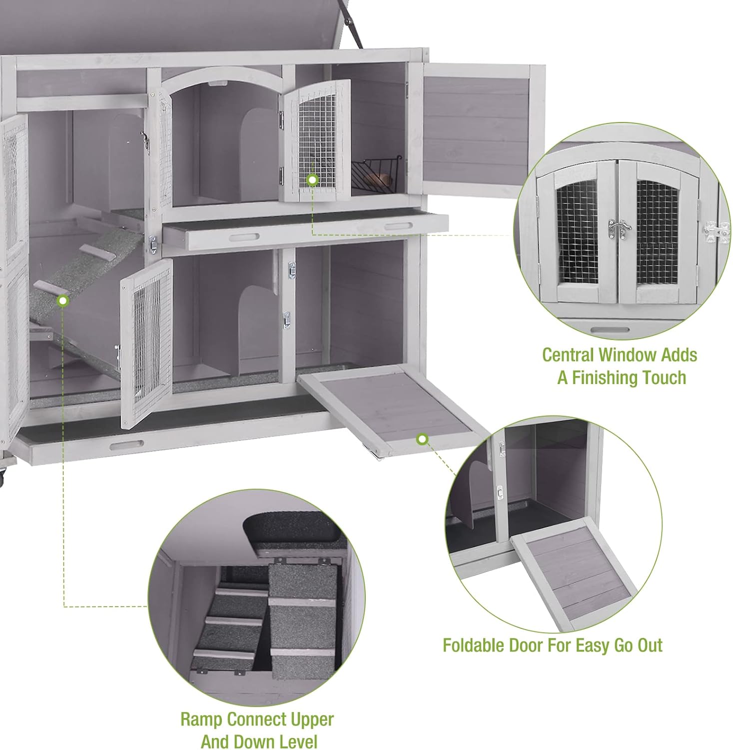 GUTINNEEN Rabbit Hutch Indoor Outdoor Bunny House Guinea Pig Cage on Wheel with Plastic Tray 47inch