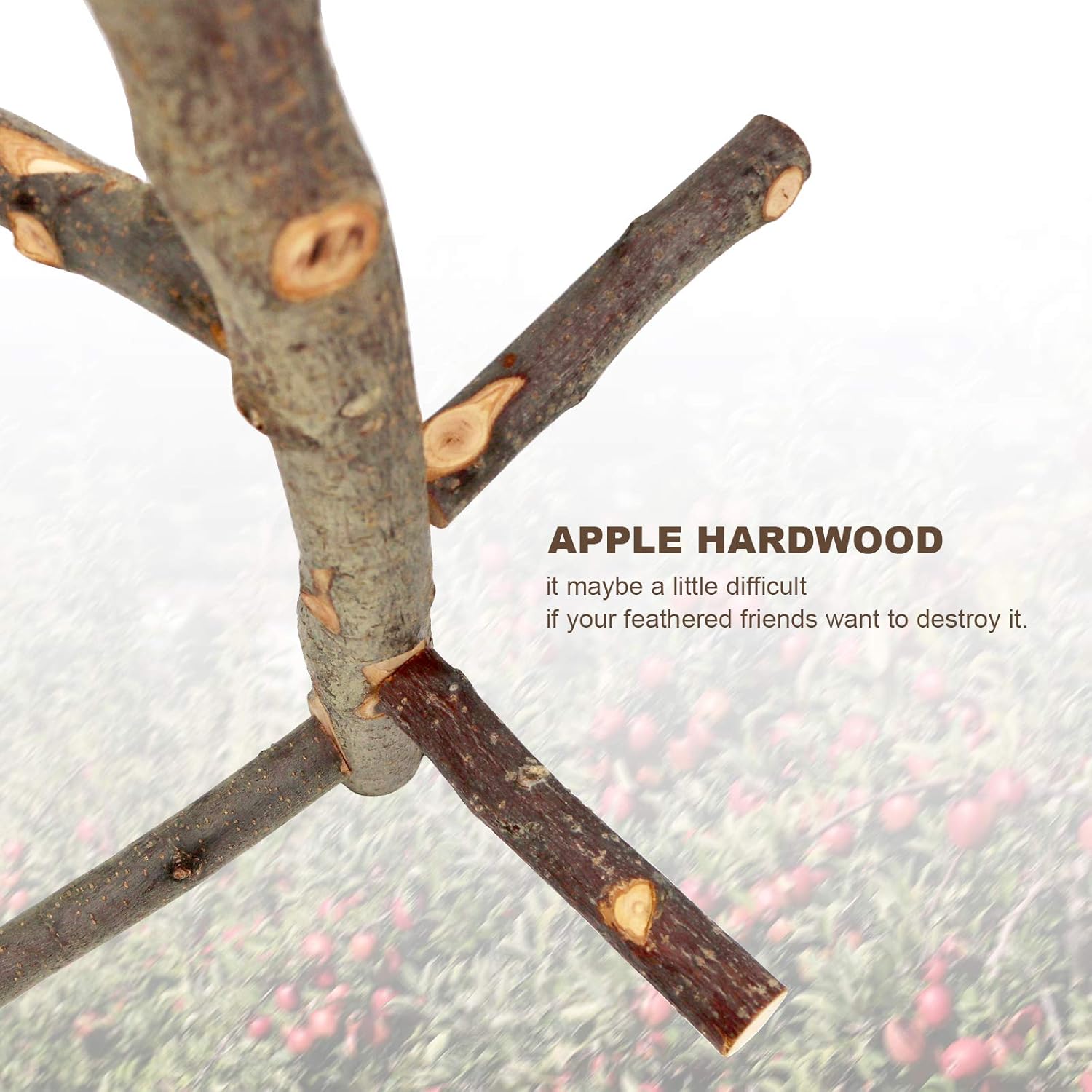 - 100% Natural Wood: Our wood perch is made from natural apple wood, this perch material is 100% nature hard wood, which is totally safe for your little pet and also can be chewing toy as well. The perch surface polished smooth,will not hurt the bird feet.