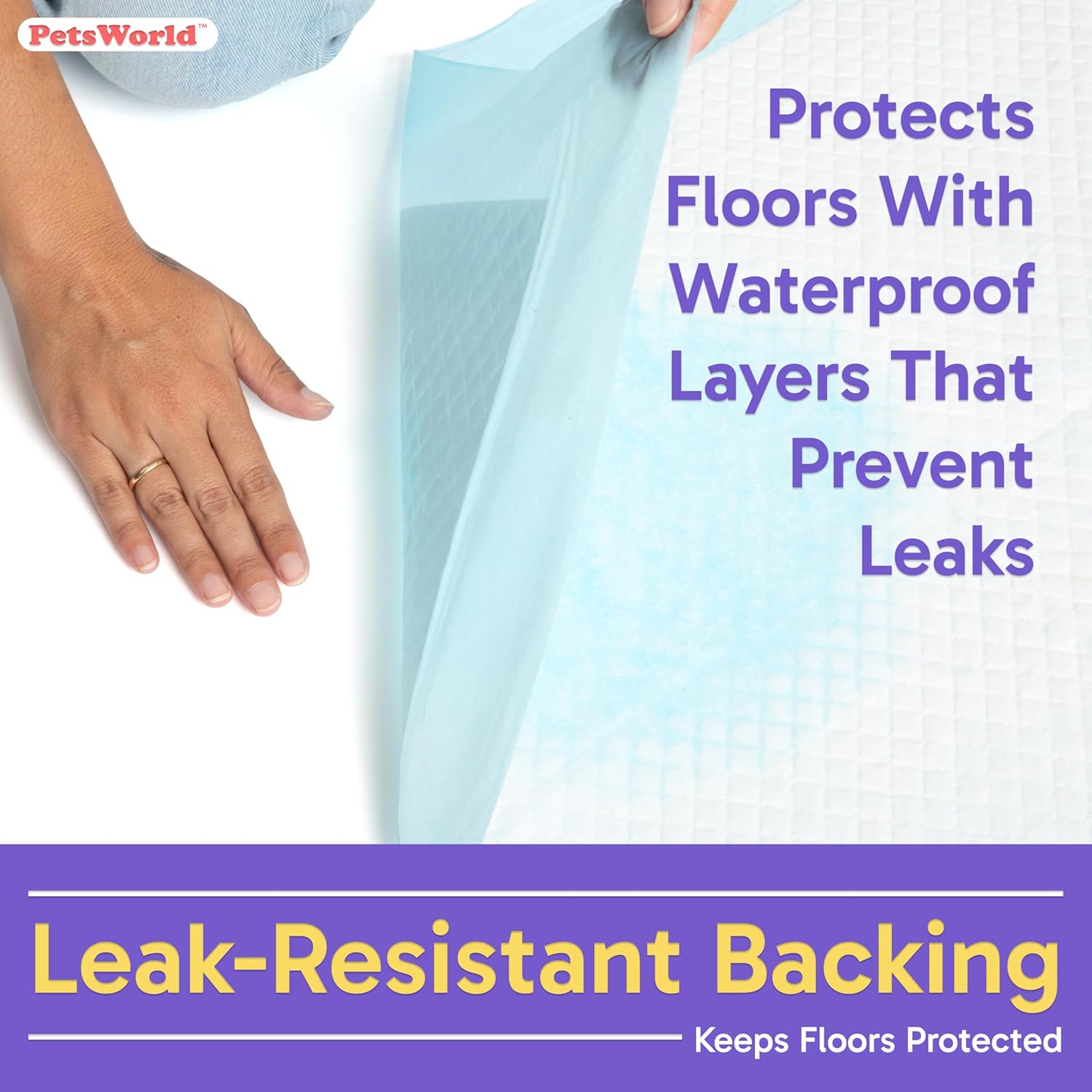 - Ultra-soft top layer: Petsworld extra large puppy pads have a soft and comfortable top layer that offers your furry friend a great place to relax and play. The top layer is also super absorbent to quickly soak up liquids and prevent messes from spreading.