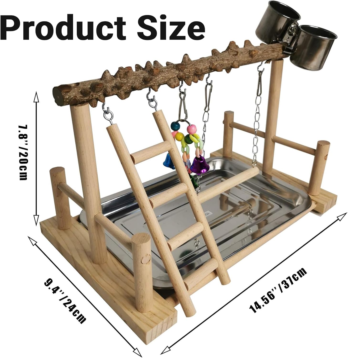 - PERFECT SIZE: SIZE: 14.56"L x 9.4"W x 7.8"H (37 x 24 x 20 cm), birdcage play stand the great portable size is suitable for placing on the desk. Brightly colored toys appeal to the birdโs strong eyesight capabilities. When kept as pets parrots need time outside of their cage to play, to exercise and to interact with their human companions