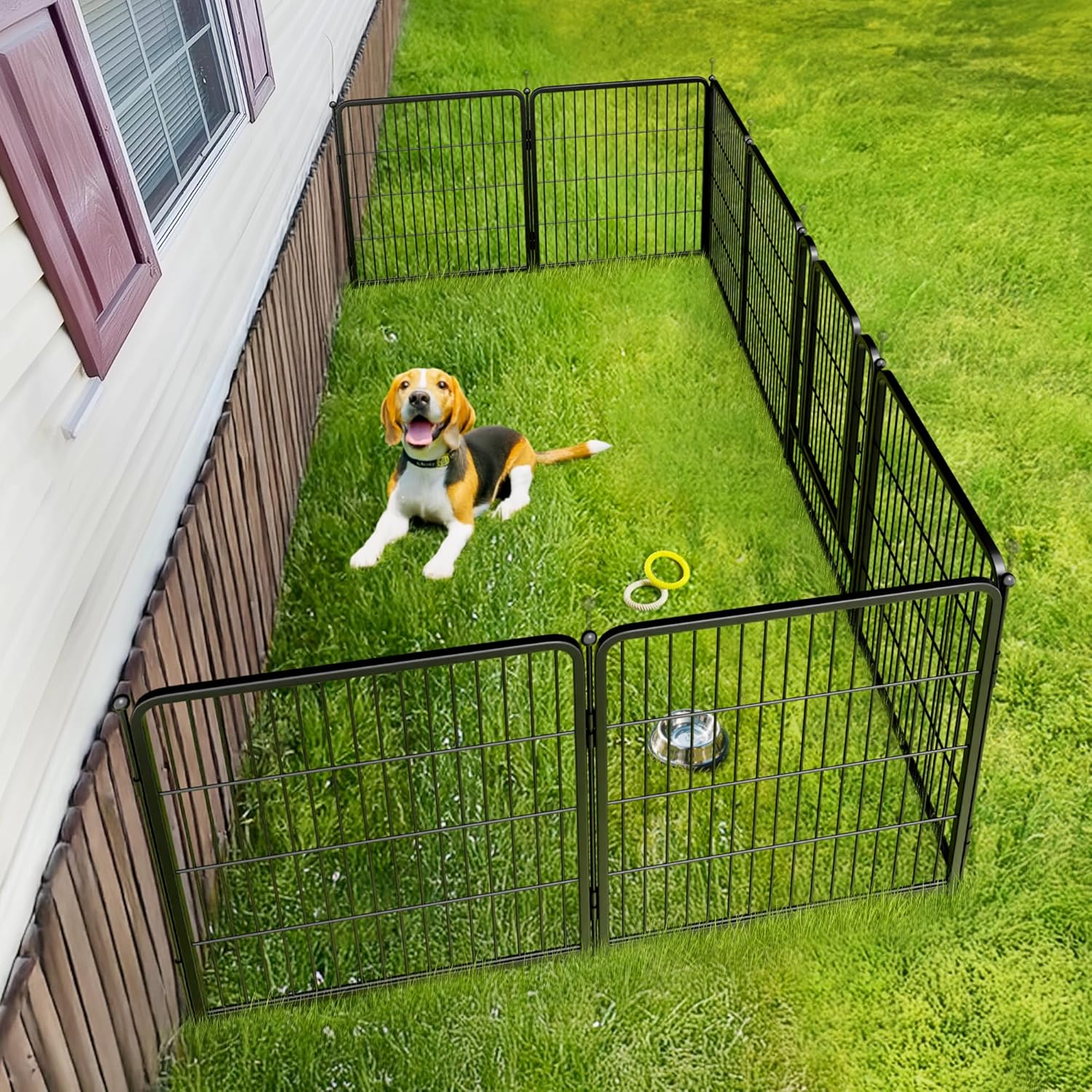 - Super easy to assemble: It won’t take you more than 5 minutes to assemble these portable dog fences as well as pack them away due to the rod-connected design. Meanwhile, panels can be added or removed freely to give you a fully flexible area and arrange the dog pen in any shape you need.