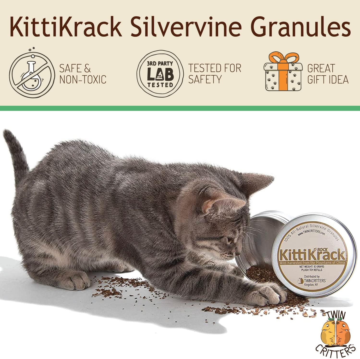 - Caring for your Cat: The continued good health of your fur-baby is our top priority here at TWINCRITTERS. This is why weโve made our KittiKrack Rock Cat Toy Refill Granules from pure wild growing silvervine fruit without any additives or preservatives.