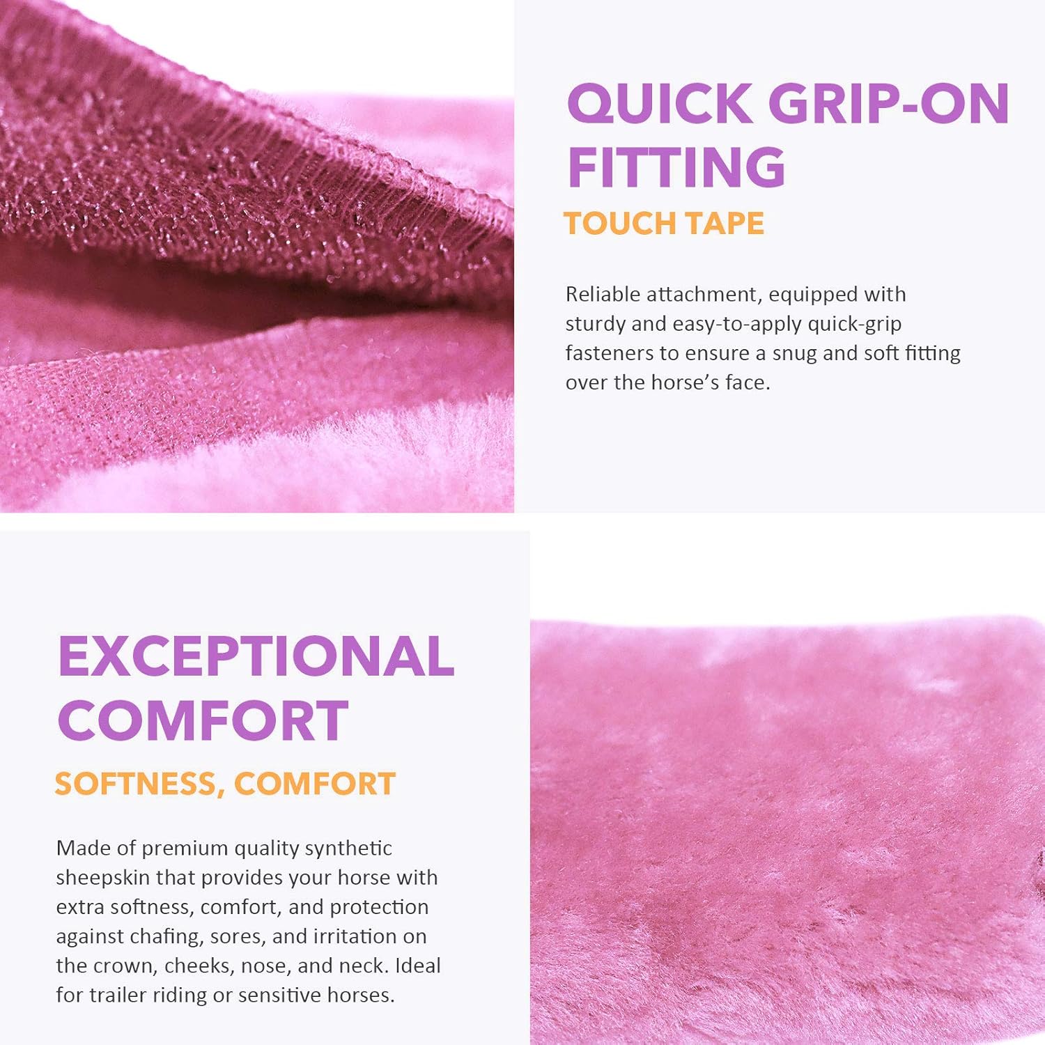 - EXCEPTIONAL COMFORT: Made of premium quality synthetic sheepskin that provides your horse with extra softness, comfort, and protection against chafing, sores, and irritation on the crown, cheeks, nose, and neck. Ideal for trailer riding or sensitive horses.