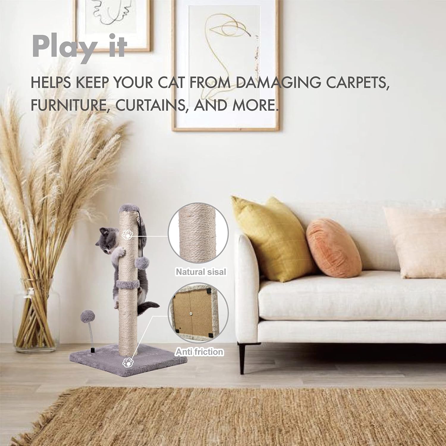 MECOOL Cat Scratching Post Premium Basics Kitten Scratcher Sisal Scratch Posts with Hanging Ball 22" for Kittens or Smaller Cats (22 inches for Kitten, Gray)