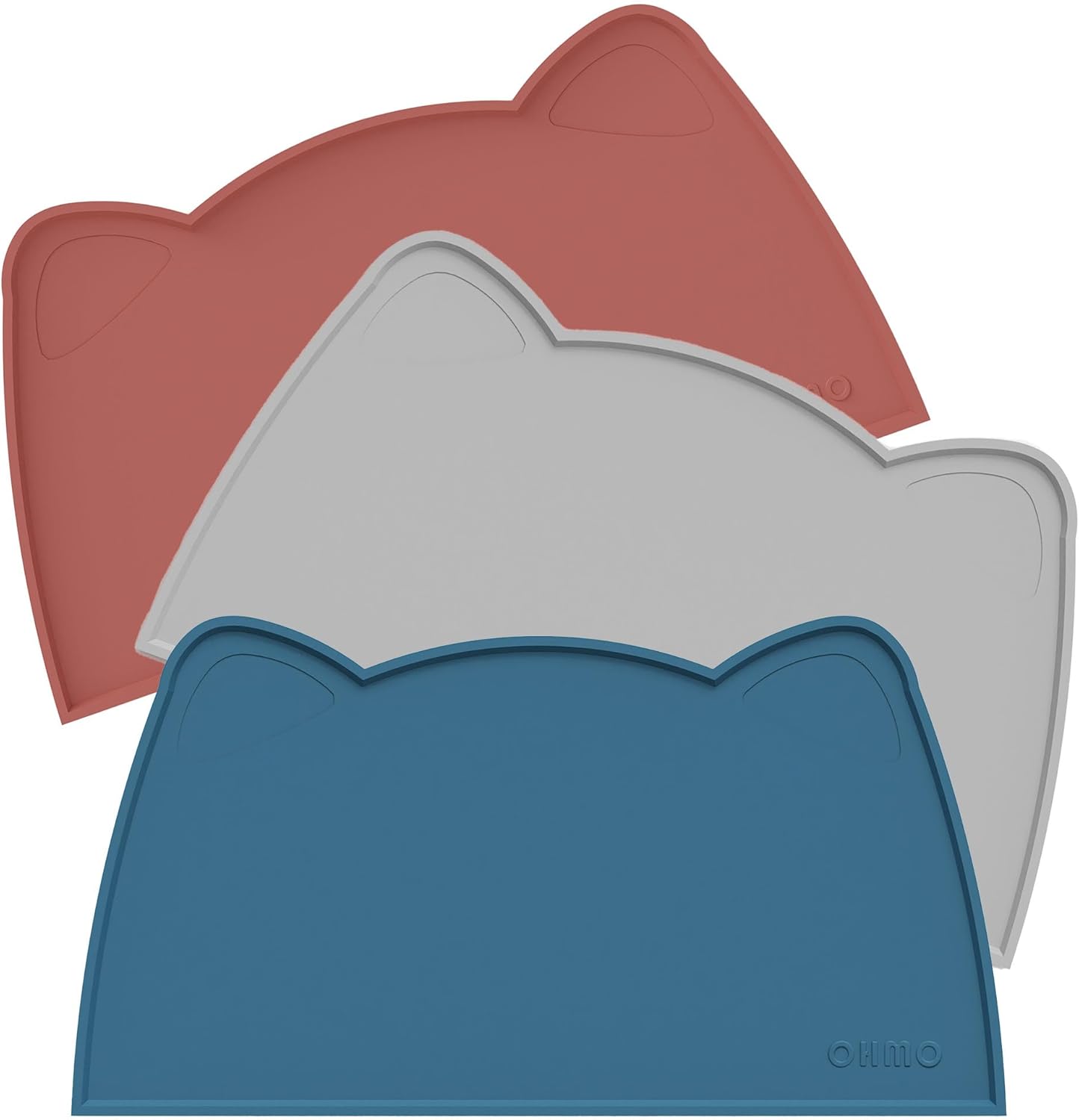 OHMO - Cat Food Mat, Silicone Pet Feeding Mat for Floor Non-Skid Waterproof Dog Water Bowl Tray, Easy to Clean Pet Placemat (Teal, 18 * 9.8'')
