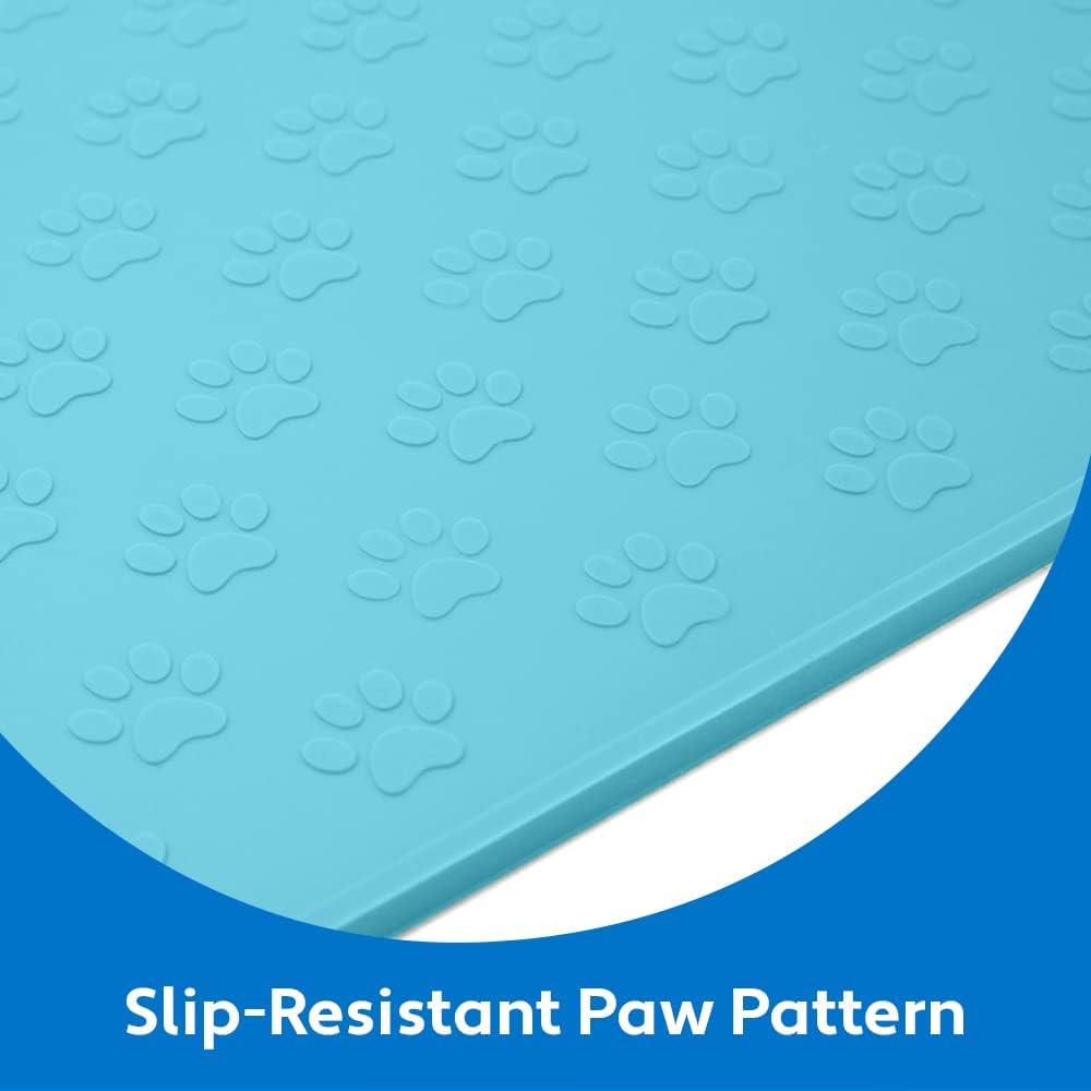 - SLIP RESISTANT TOPSIDE: raised paw pattern on topside helps keep bowls from sliding, while also preventing food, crumbs and water from reaching your floors