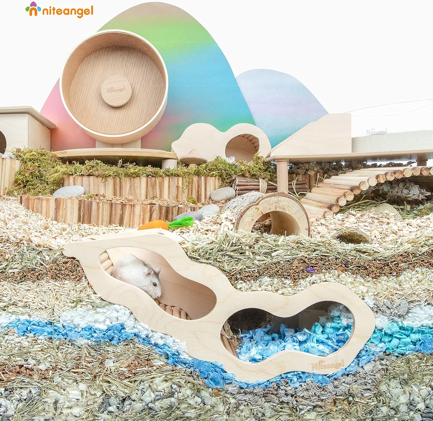 Niteangel Hamster House w/Climbing Ladder for Hamsters Gerbils Mice or Similar-Sized Pets (Secret Peep Tunnel Hamster Hut)