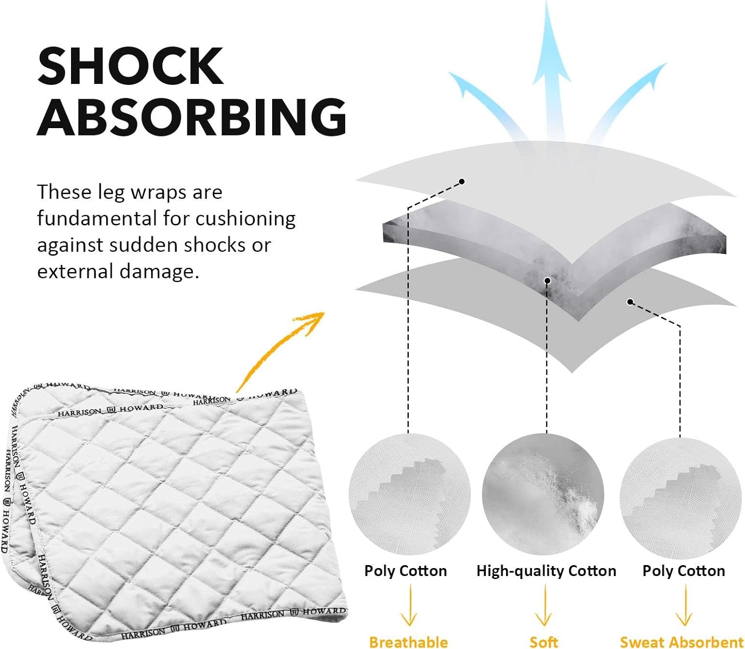 - CUSHIONS SHOCK: Lined with soft poly cotton that has excellent shock-absorbing ability, these leg wraps are fundamental for cushioning against sudden shocks or external damage.
