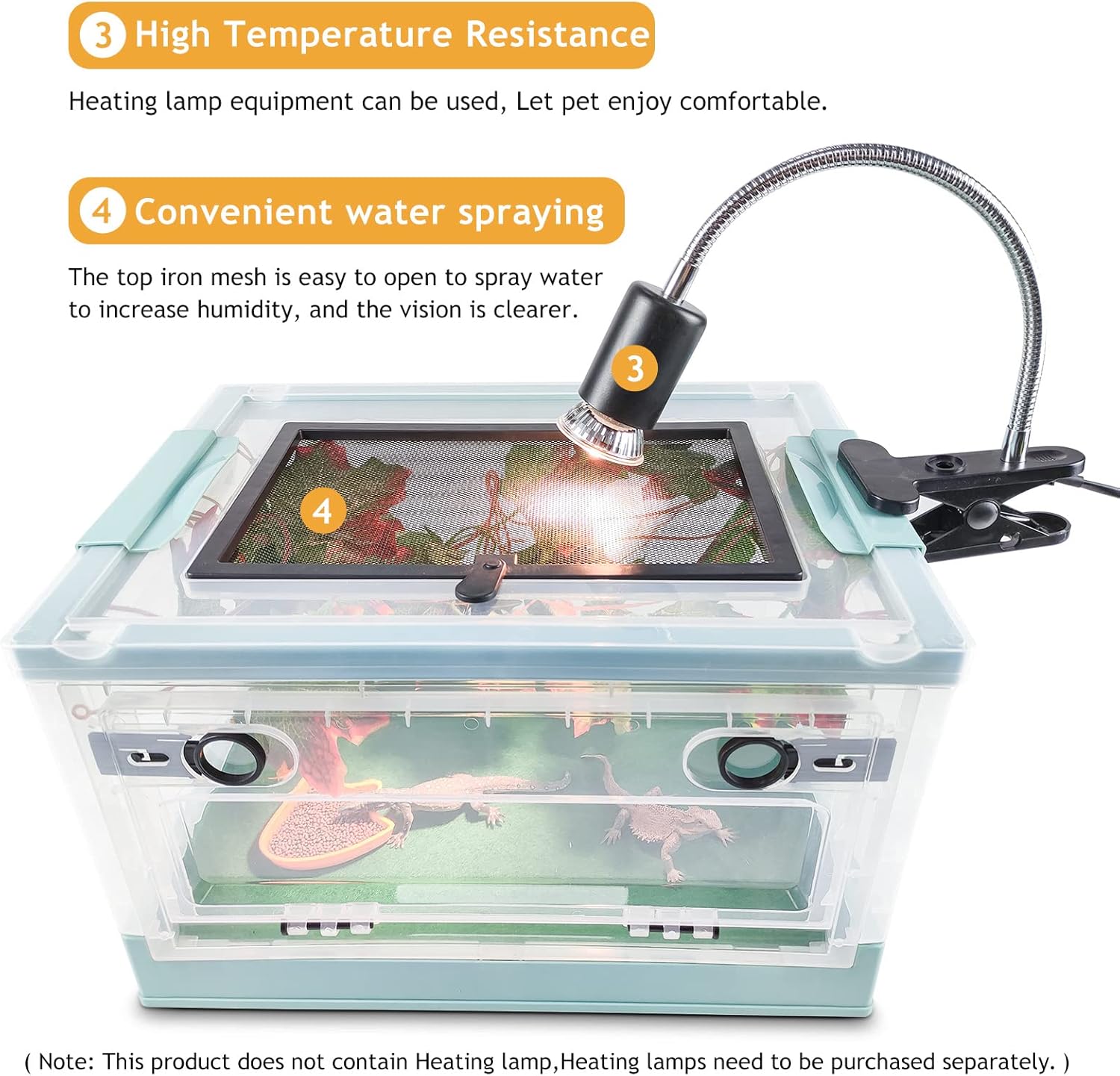 - 5. [Heating lamp can be used] the top iron mesh design can be opened to facilitate the pet spray water to increase humidity, high temperature resistant materials, you can use the heating lamp equipment