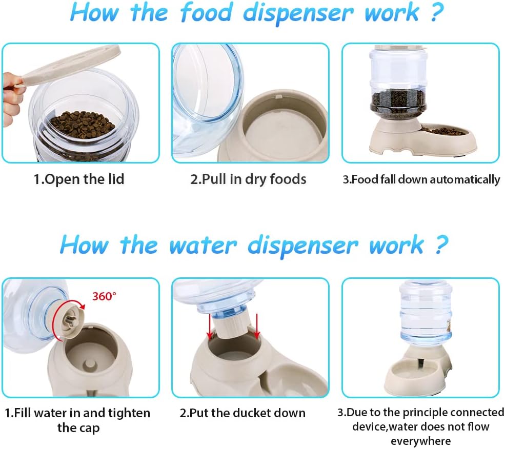 - AUTOMATIC CAT FEEDER SET: Cat food dispenser dry food as pets empty the bowl, prolonging time between refills.Side cut-out handles along base for easy lifting; non-skid rubber feet,deal for cats or dogs in single- or multiple-pet homes