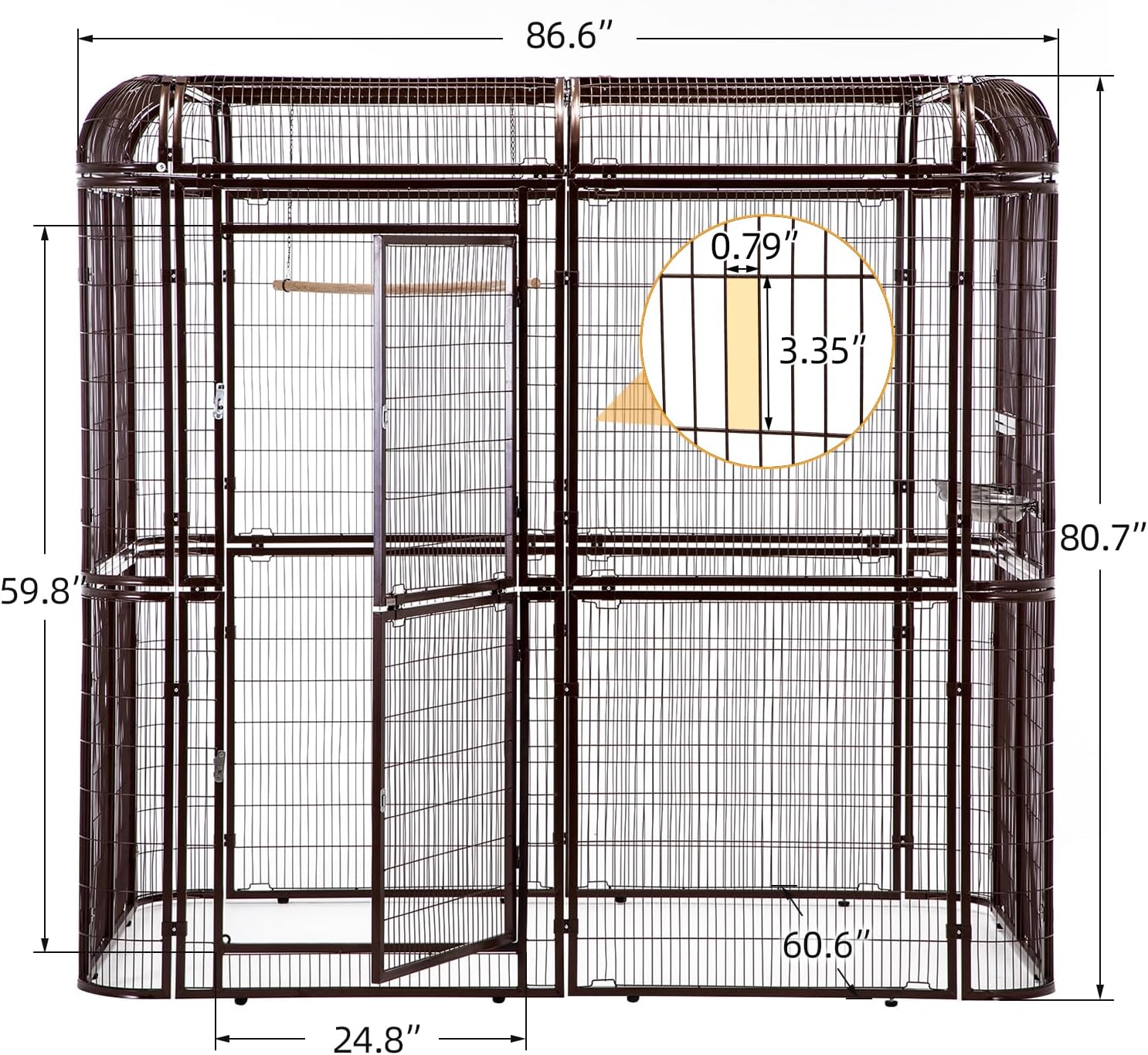 - Need to Assemble - The cage comes with three separate packages. Overall Size: 86.5โL x 60.5โW x 80.39โH;Door size: 59.8"H X 24.8"W