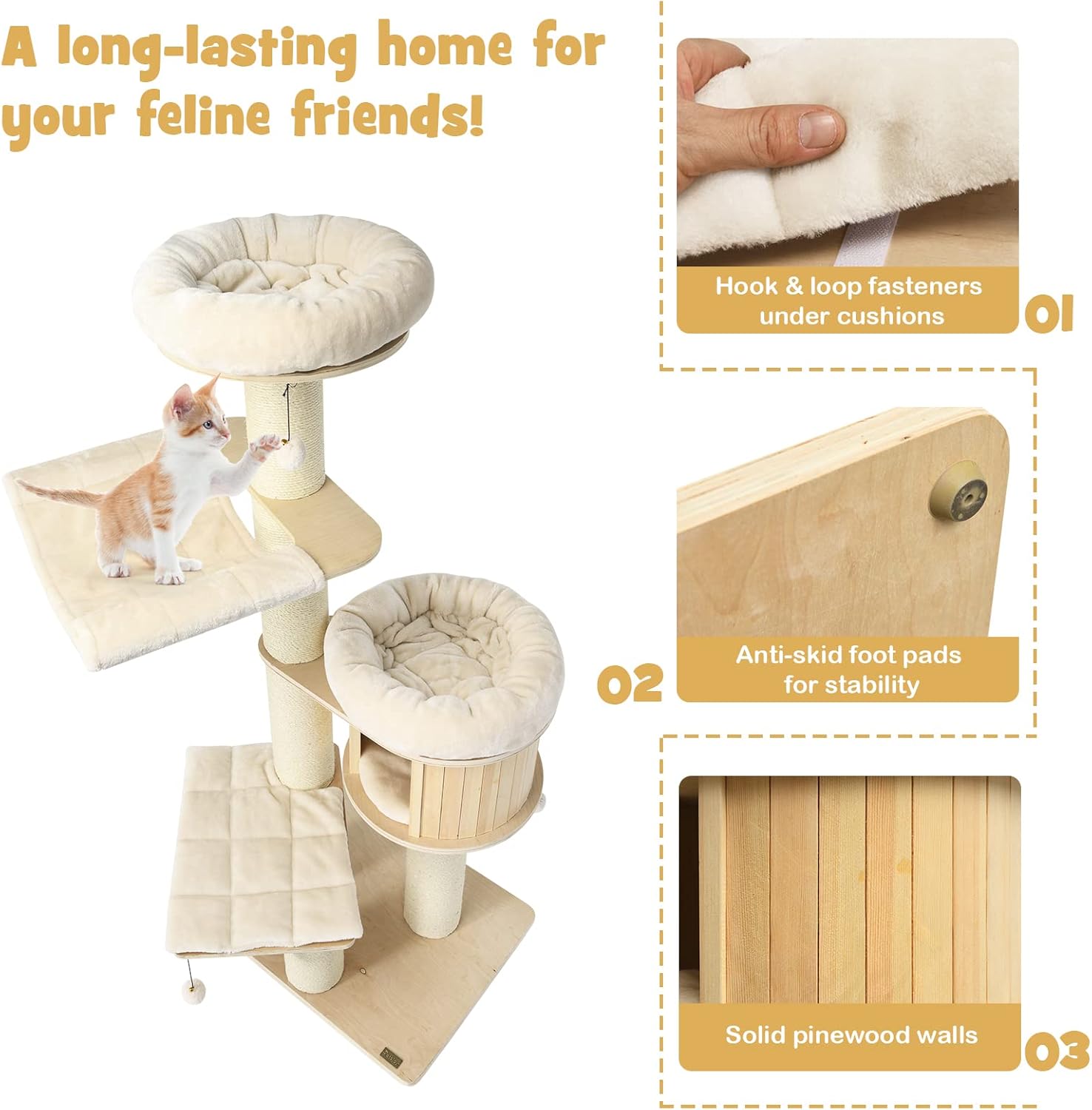 - [Designed for Multiple Large Cats]: Crafted for durability, our cat tower boasts a robust frame comprising birch plywood, pine board, and MDF. The 5.7-inch diameter cat scratching posts ensure unparalleled stability. With each layer supporting up to 33 pounds, this tower is not only sturdy but also perfect for accommodating multiple full-grown cats, providing them a secure and playful haven.