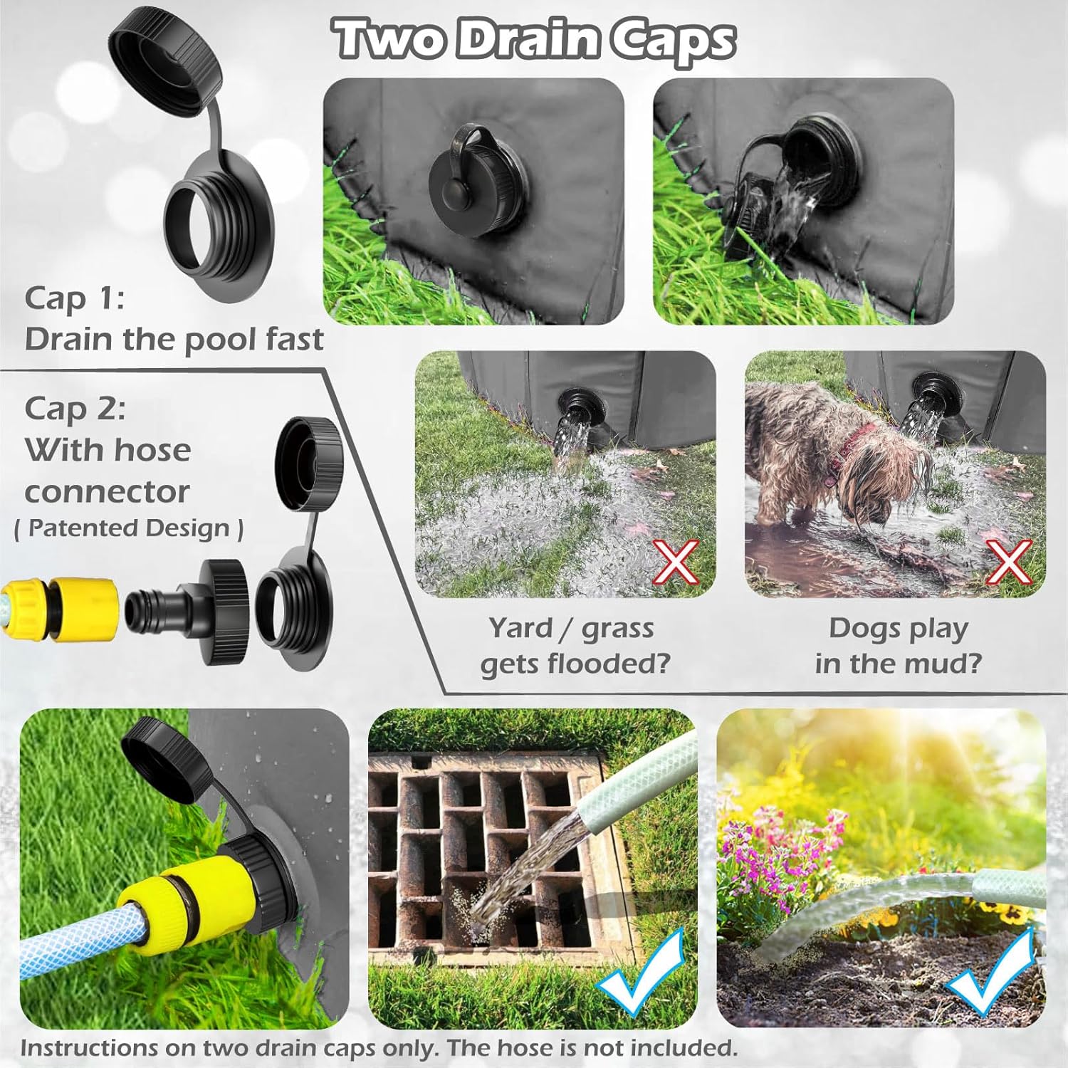 - Extra Hose Connector Included: Yard/grass gets flooded? Simply connect a garden hose and easy to drain.