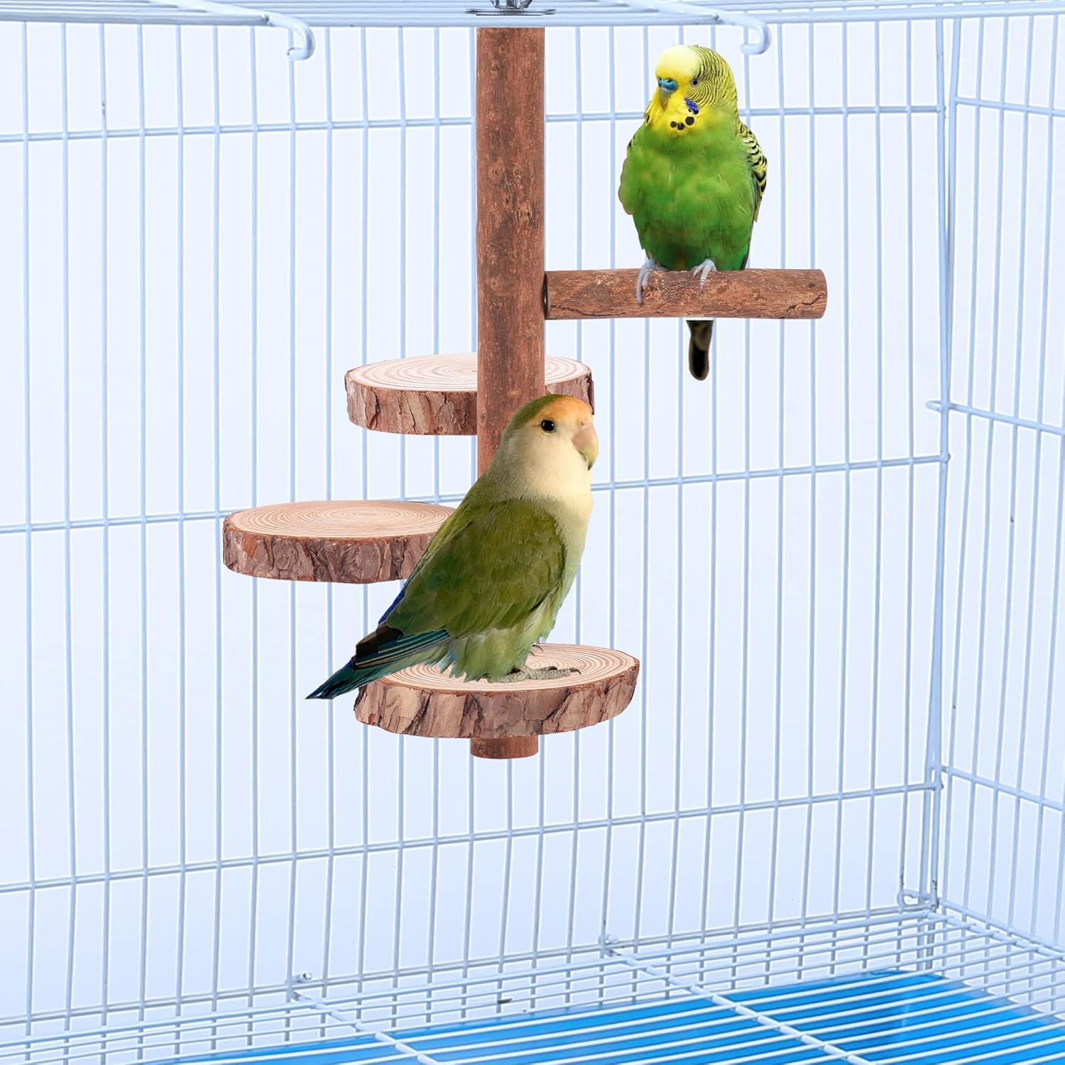 Natural Wood Bird Perch Stand Platform, Hanging Round Wooden Rotating Platform Pet Parrot Bird Cage Perches for Parakeet Parrots Cockatiel Hamster Gerbil Chinchillas(Round Platform)