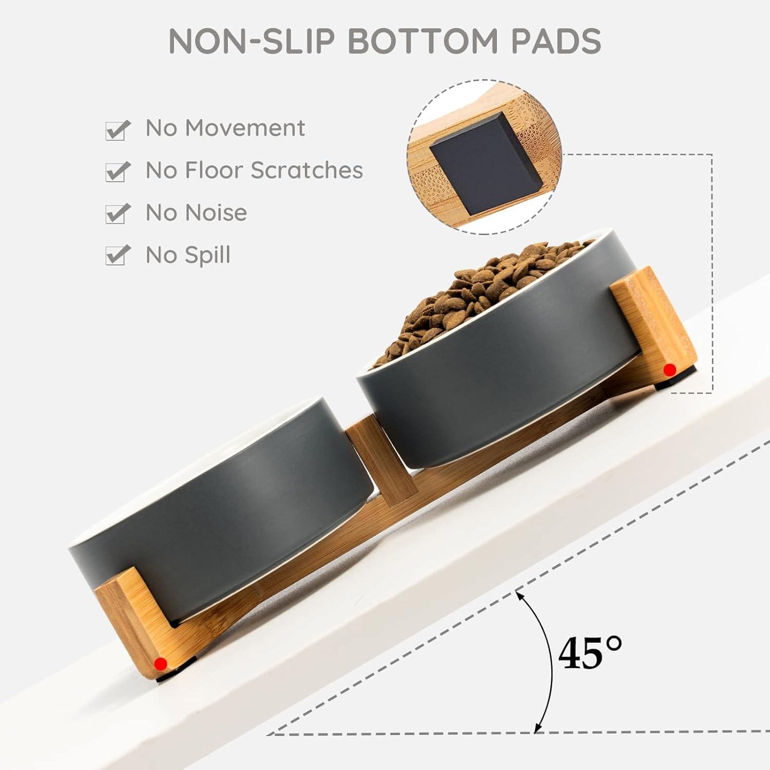 - [Double Bowl Design]:One dog bowl for food and one for water, Each ceramic cat bowl has a Unique wooden stand, raising the dishes closer to your pet for more comfortable eating